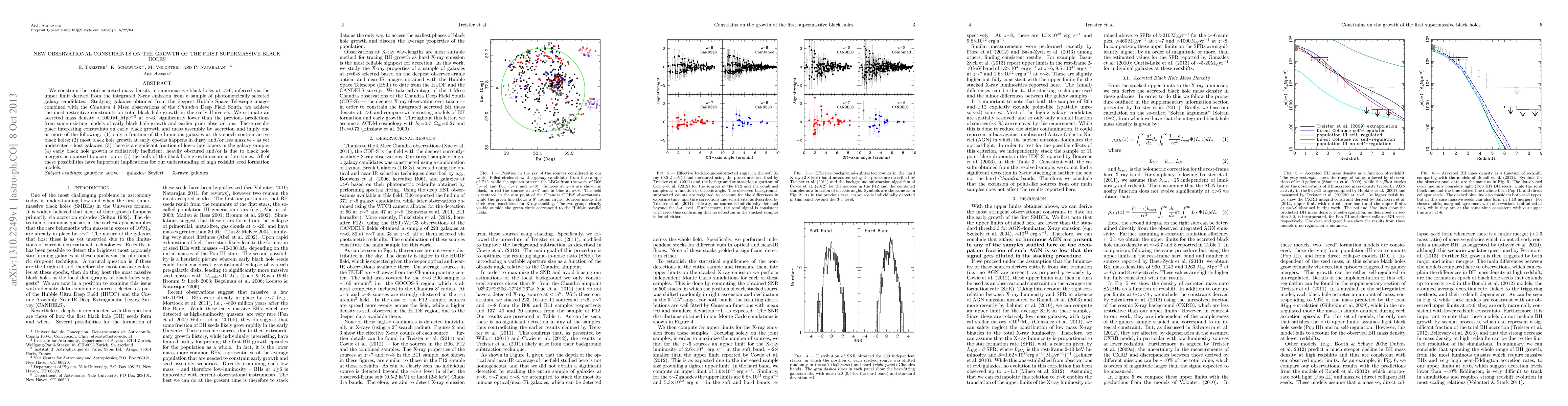 We constrain the total accreted mass density in supermassive black holes at z>6, inferred via the upper limit derived from the integrated X-ray emission from a sample of photometrically selected galaxy candidates. Studying galaxies obtained from the deepest Hubble Space Telescope images combined with the Chandra 4 Msec observations of the Chandra Deep Field South, we achieve the most restrictive constraints on total black hole growth in the early Universe. We estimate an accreted mass density <1000Mo Mpc^-3 at z~6, significantly lower than the previous predictions from some existing models of early black hole growth and earlier prior observations. These results place interesting constraints on early black growth and mass assembly by accretion and imply one or more of the following: (1) only a fraction of the luminous galaxies at this epoch contain active black holes; (2) most black hole growth at early epochs happens in dusty and/or less massive - as yet undetected - host galaxies; (3) there is a significant fraction of low-z interlopers in the galaxy sample; (4) early black hole growth is radiatively inefficient, heavily obscured and/or is due to black hole mergers as opposed to accretion or (5) the bulk of the black hole growth occurs at late times. All of these possibilities have important implications for our understanding of high redshift seed formation models.