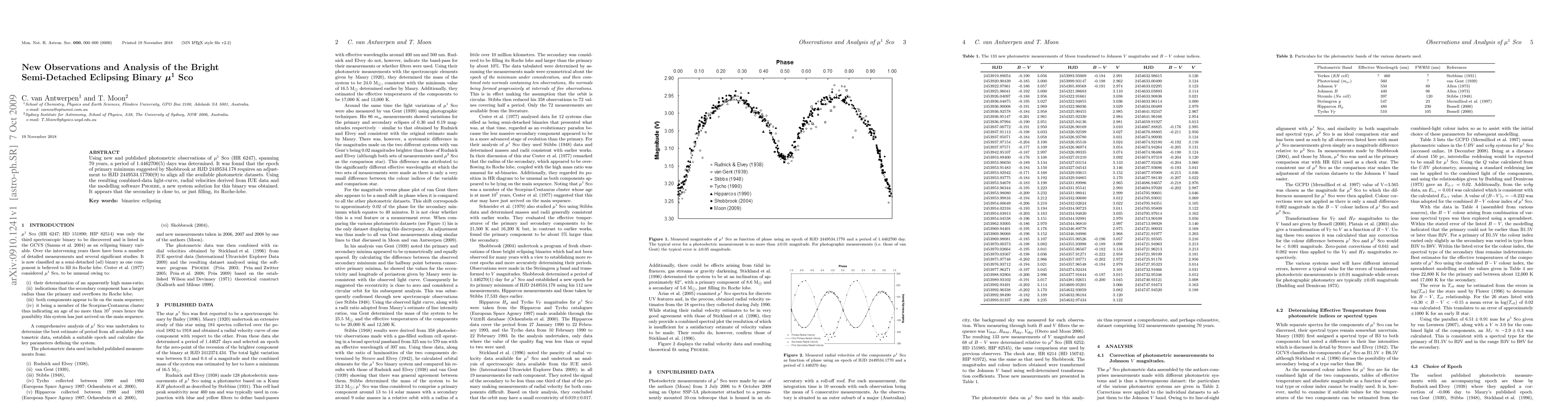 Using new and published photometric observations of mu1 Sco (HR 6247), spanning 70 years, a period of 1.4462700(5) days was determined. It was found that the epoch of primary minimum suggested by Shobbrook at HJD 2449534.178 requires an adjustment to HJD 2449534.17700(9) to align all the available photometric datasets. Using the resulting combined-data light-curve, radial velocities derived from IUE data and the modelling software PHOEBE, a new system solution for this binary was obtained. It appears that the secondary is close to, or just filling, its Roche-lobe.