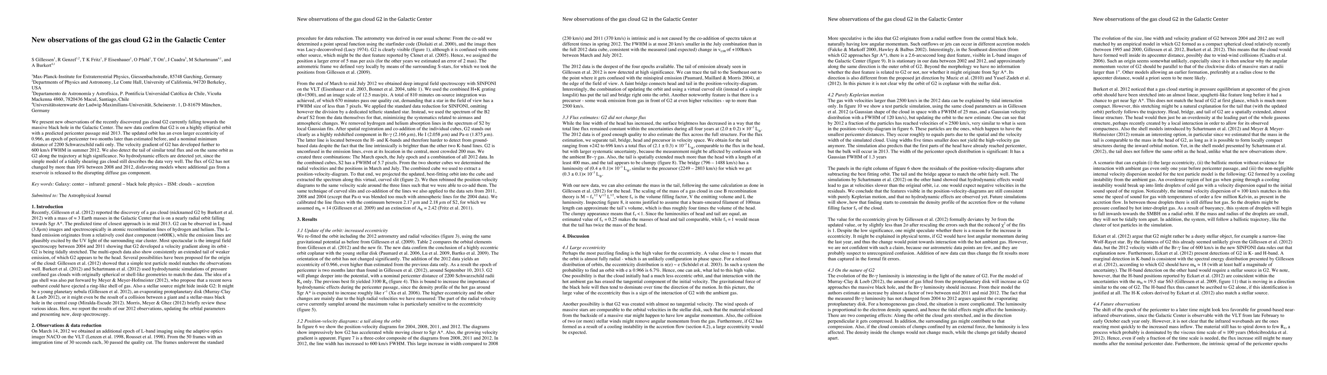 New observations confirm that gas cloud G2 is on a highly elliptical orbit towards the Galactic Center's massive black hole, with a predicted pericenter passage in mid 2013 and a minimum distance of 2200 Schwarzschild radii. No hydrodynamic effects have been detected, and the cloud's flux has remained stable over the years.