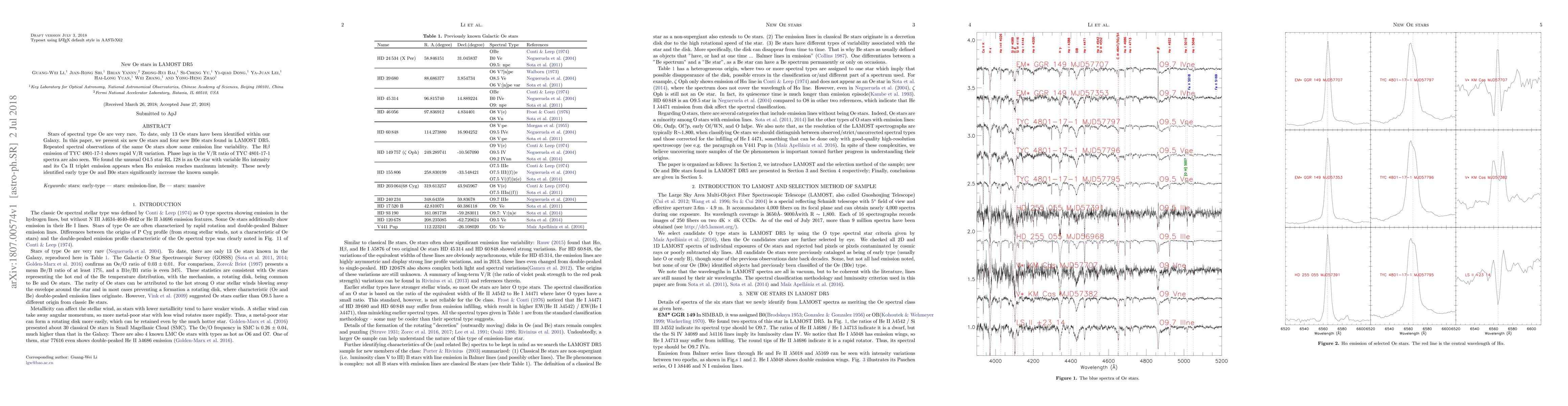 This paper identifies six new Oe stars and four new B0e stars in LAMOST DR5, significantly expanding the known sample of these rare spectral types. Observations reveal emission line variability, including rapid V/R variations in the H$\beta$ emission of TYC 4801-17-1 and phase lags in its spectra, as well as variable H$\alpha$ intensity in the unusual O4.5 star RL 128.