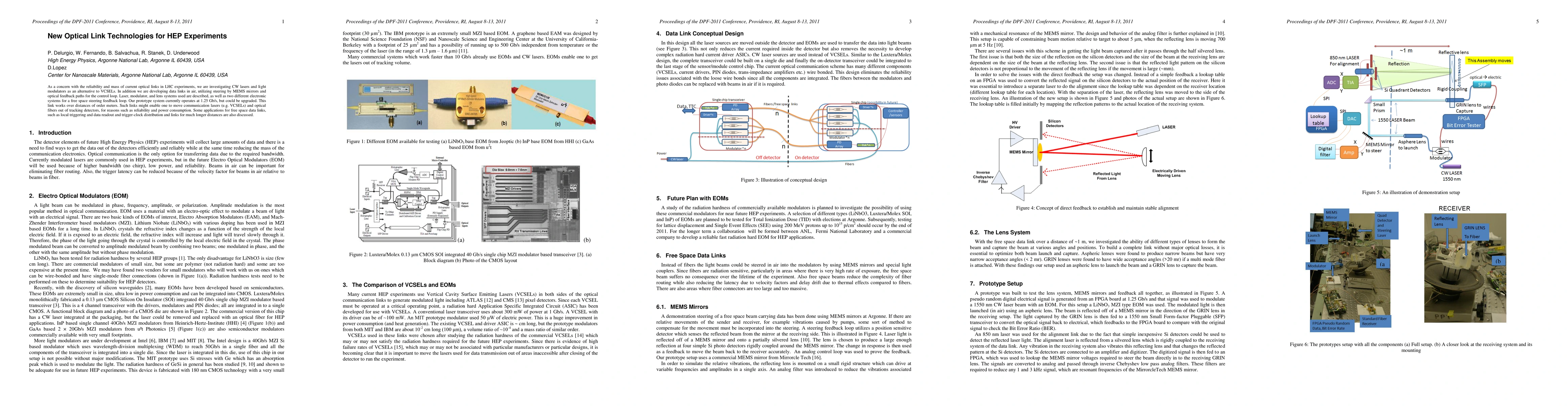 This work introduces a significant departure from traditional VCSEL-based optical links by employing CW lasers, light modulators, and free space data transmission, offering potential improvements in reliability, power consumption, and mass in HEP experiments.