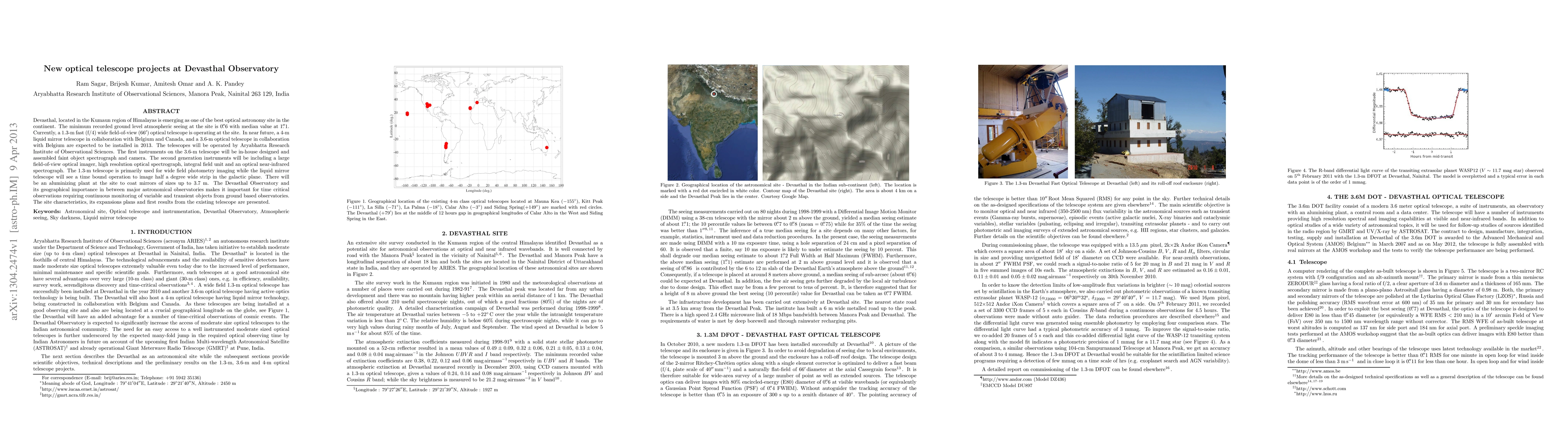 Devasthal Observatory in the Himalayas is set to expand with a 4-m liquid mirror telescope and a 3.6-m optical telescope, enhancing its status as a premier optical astronomy site. The observatory will house advanced instruments and support continuous monitoring of variable and transient astronomical objects.