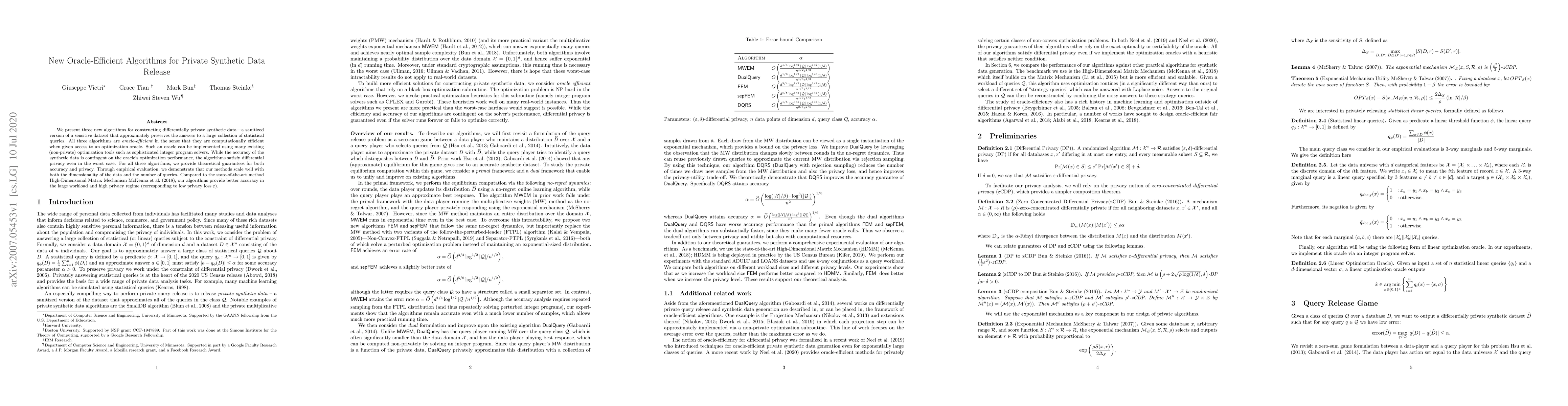 This paper introduces three new oracle-efficient algorithms for generating differentially private synthetic data that maintains statistical query answers while ensuring differential privacy. The proposed methods outperform existing techniques, particularly in scenarios with high privacy requirements and large data dimensionality.