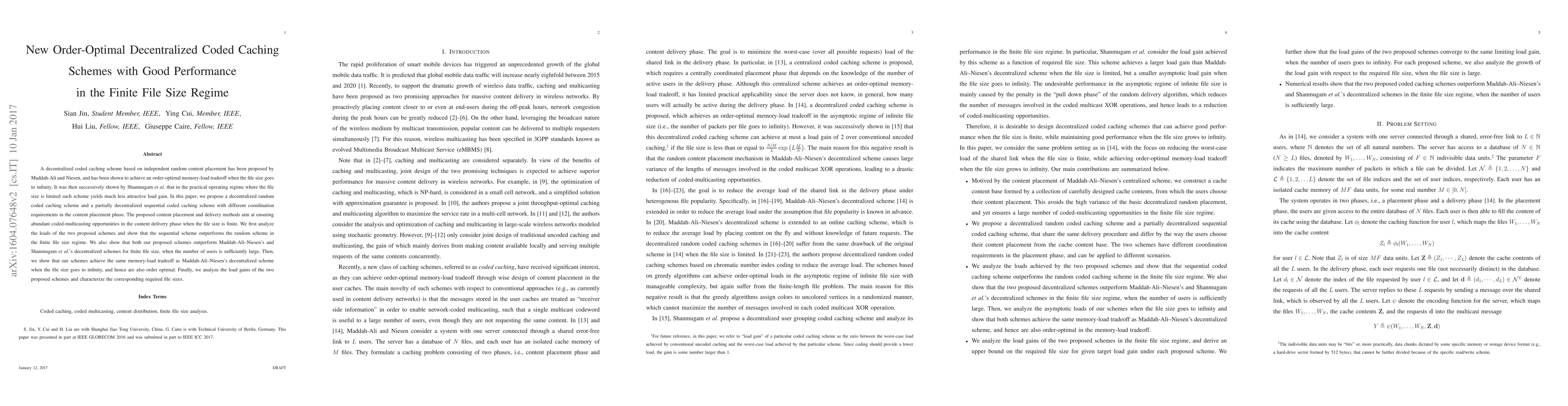 Researchers propose two new caching schemes for decentralized networks that outperform existing schemes in the finite file size regime, achieving order-optimal memory-load tradeoffs with large file sizes.