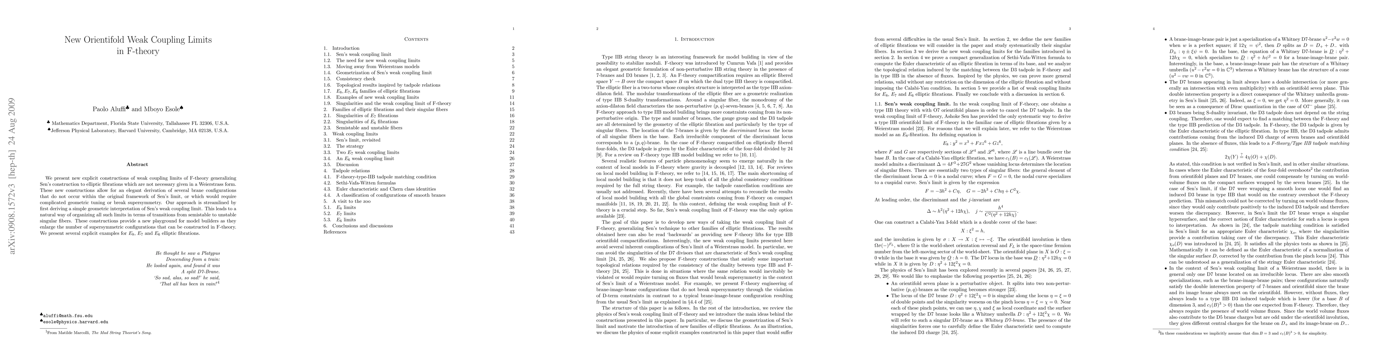 This paper introduces new constructions for F-theory weak coupling limits beyond Sen's original framework, allowing for simpler derivation of previously inaccessible brane configurations. It provides a geometric interpretation and organizes these limits through transitions between semistable and unstable fibers, expanding the range of supersymmetric configurations in F-theory.