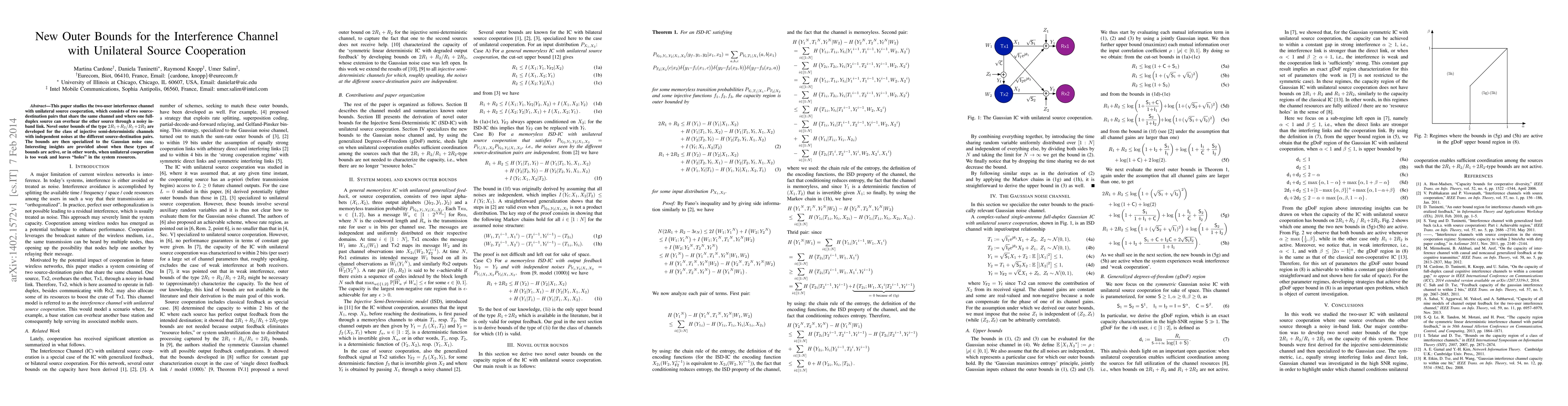 This paper develops new outer bounds for the two-user interference channel with unilateral source cooperation, showing 2Rp+Rc/Rp+2Rc for certain semi-deterministic channels. It also explores the Gaussian noise case and provides insights into when unilateral cooperation is insufficient.