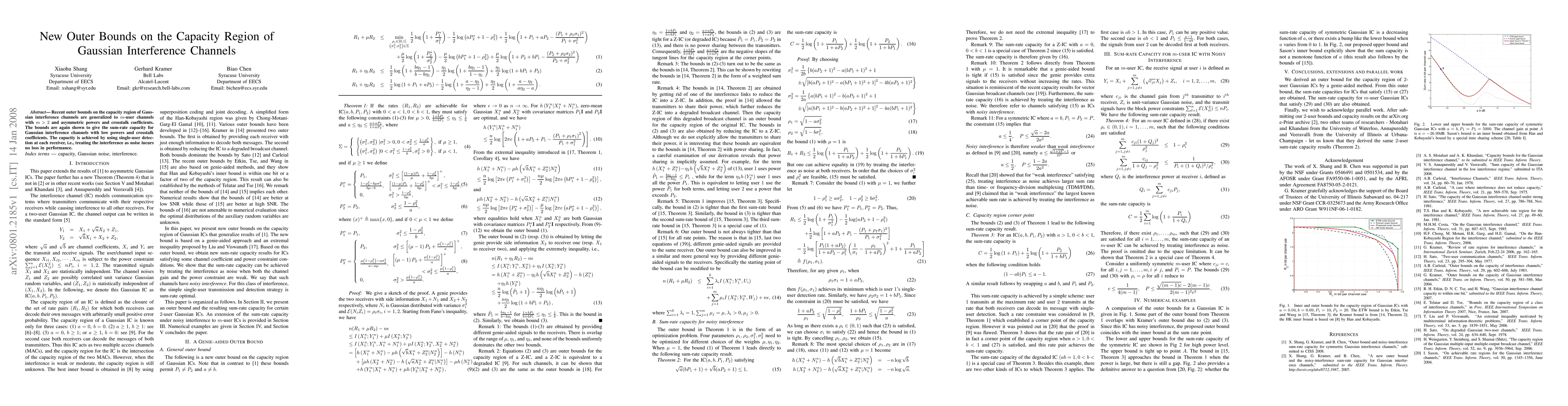 Recent outer bounds on the capacity region of Gaussian interference channels are generalized to $m$-user channels with $m>2$ and asymmetric powers and crosstalk coefficients. The bounds are again shown to give the sum-rate capacity for Gaussian interference channels with low powers and crosstalk coefficients. The capacity is achieved by using single-user detection at each receiver, i.e., treating the interference as noise incurs no loss in performance.
