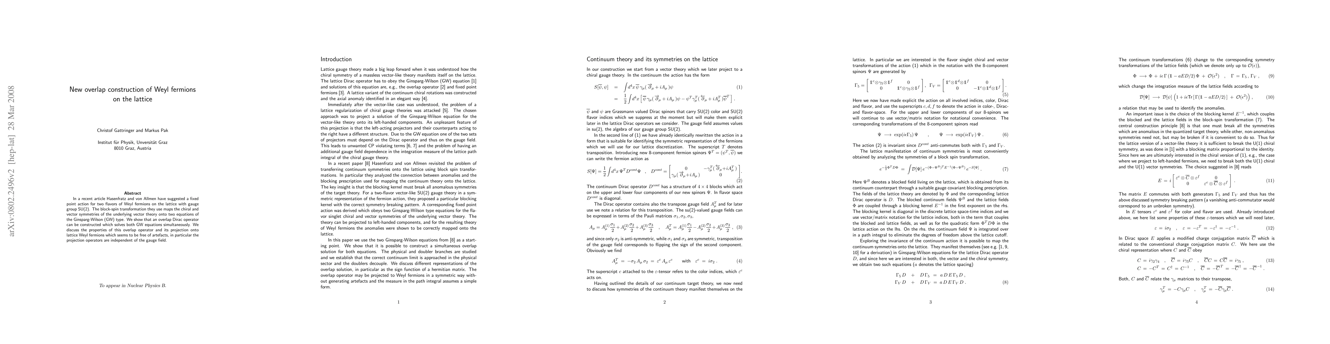 This paper constructs an overlap Dirac operator that simultaneously satisfies both Ginsparg-Wilson equations, solving the challenge posed by Hasenfratz and von Allmen for Weyl fermions on an SU(2) lattice. The resulting overlap operator and its projection onto lattice Weyl fermions appear free of artefacts, notably with gauge-independent projection operators.