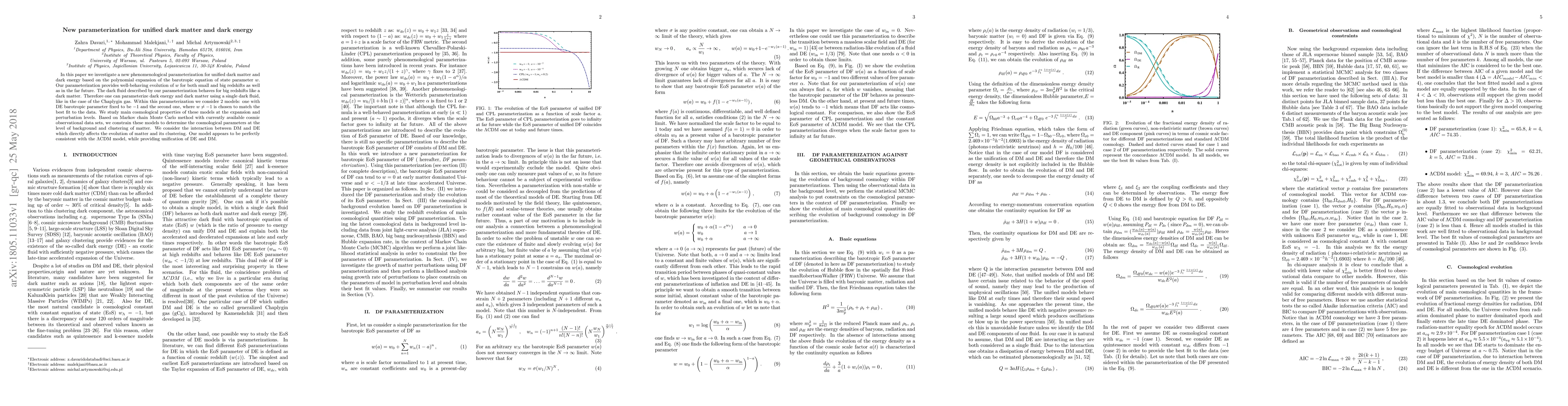 In this paper we investigate a new phenomenological parameterization for unified dark matter and dark energy based on the polynomial expansion of the barotropic equation of state parameter $w$. Our parameterization provides well-behaving evolution of $w$ for both small and big redshifts as well as in the far future. The dark fluid described by our parameterization behaves for big redshifts like a dark matter. Therefore one can parameterize dark energy and dark matter using a single dark fluid, like in the case of the Chaplygin gas. Within this parameterization we consider 2 models: one with DE barotropic parameter fixed to be $-1$ and the second one, where $w \neq -1$ is chosen to match the best fit to the data. We study main cosmological properties of these models at the expansion and perturbation levels. Based on Markov chain Monte Carlo method with currently available cosmic observational data sets, we constrain these models to determine the cosmological parameters at the level of background and clustering of matter. We consider the interaction between DM and DE which directly affects the evolution of matter and its clustering. Our model appears to be perfectly consistent with the $\Lambda$CDM model, while providing unification of DE and DM.