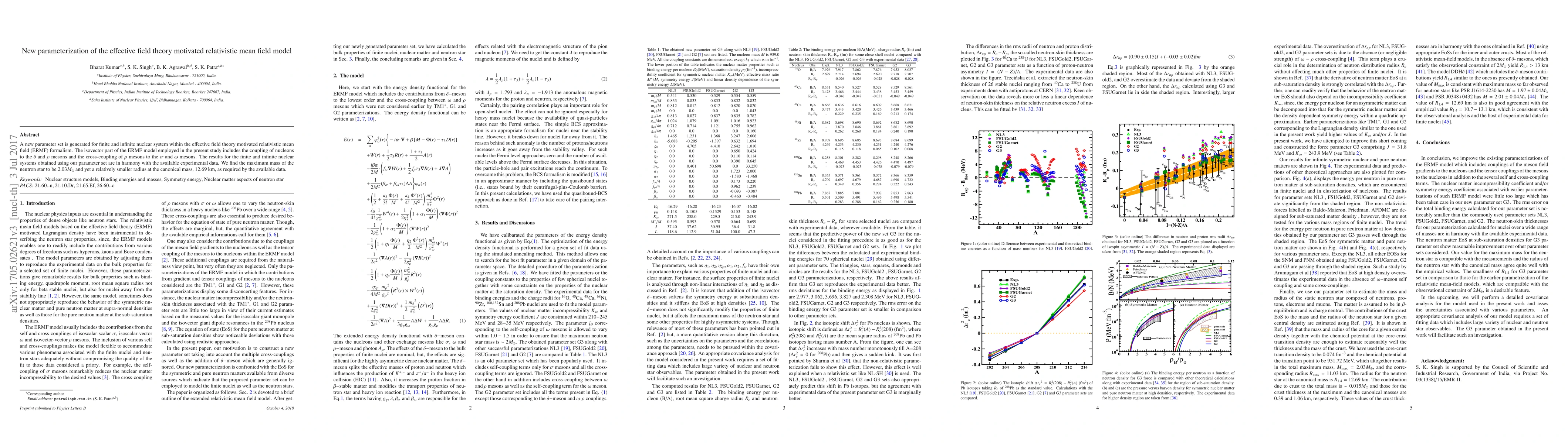This paper introduces a new parameter set for the effective field theory motivated relativistic mean field (ERMF) model, which includes nucleon coupling to δ and ρ mesons and cross-coupling of ρ mesons to σ and ω mesons. The results align well with experimental data, predicting a neutron star maximum mass of 2.03M☉ and a relatively smaller radius of 12.69 km at the canonical mass.
