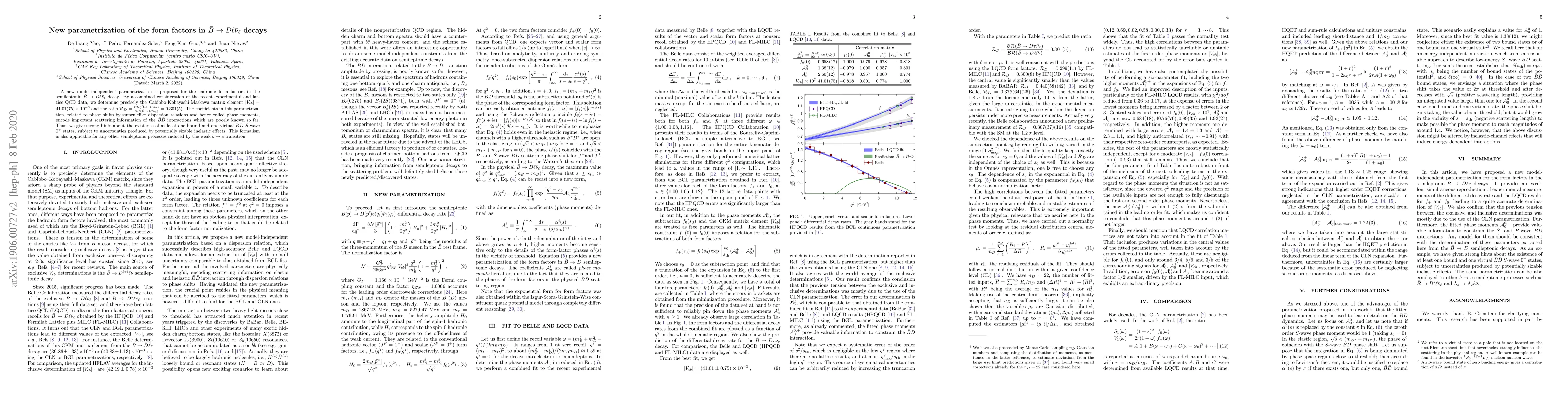 This paper proposes a new parametrization for the hadronic form factors in $\bar{B}\to D\ell\bar{\nu}_\ell$ decays, determining precise values for $|V_{cb}|$ and $\mathcal{R}_D$ using experimental and lattice QCD data. The parametrization, termed phase moments, suggests the existence of at least one bound and one virtual $\bar B \bar D$ $S$-wave $0^+$ state.