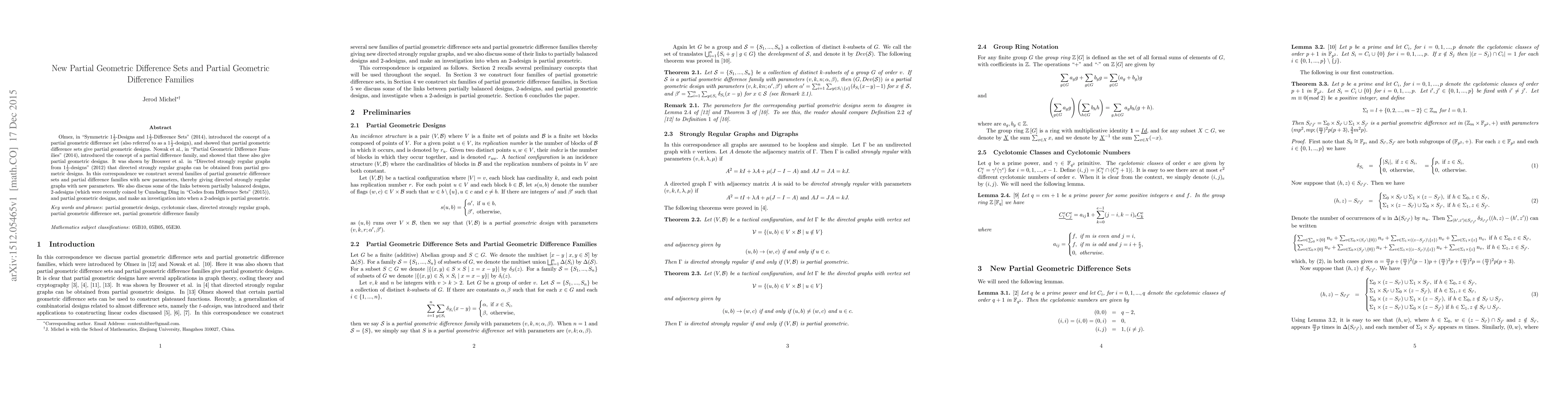 This paper constructs new families of partial geometric difference sets and partial difference families, leading to directed strongly regular graphs with novel parameters. It also explores connections between partially balanced designs, 2-adesigns, and partial geometric designs, and investigates when a 2-adesign can be partial geometric.