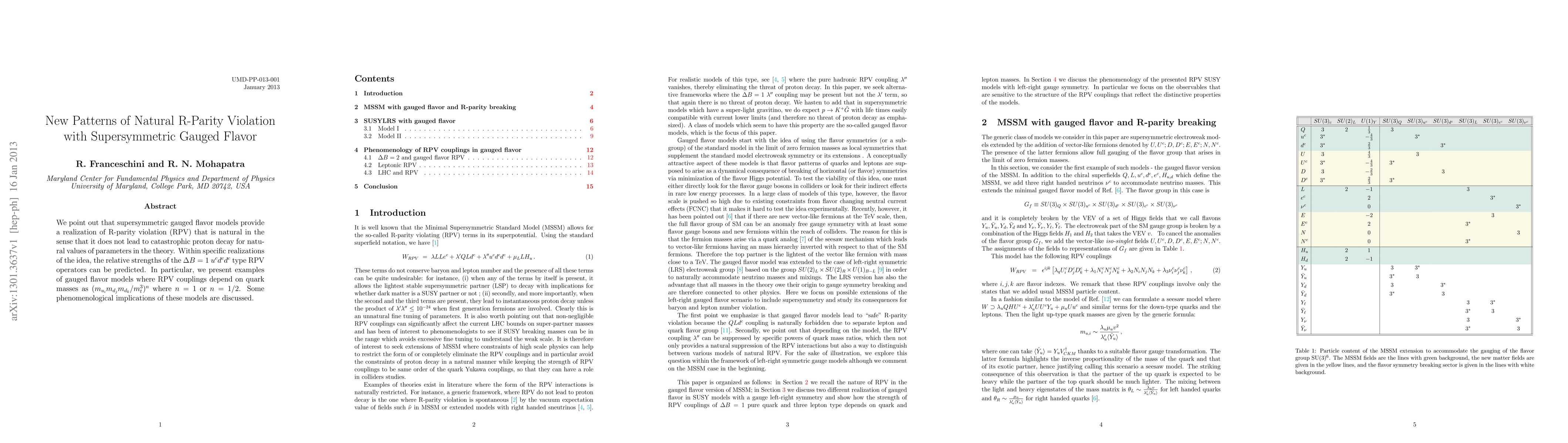 This paper explores supersymmetric gauged flavor models that naturally realize R-parity violation without causing problematic proton decay, predicting the relative strengths of specific RPV operators dependent on quark masses. It discusses phenomenological implications of these models.