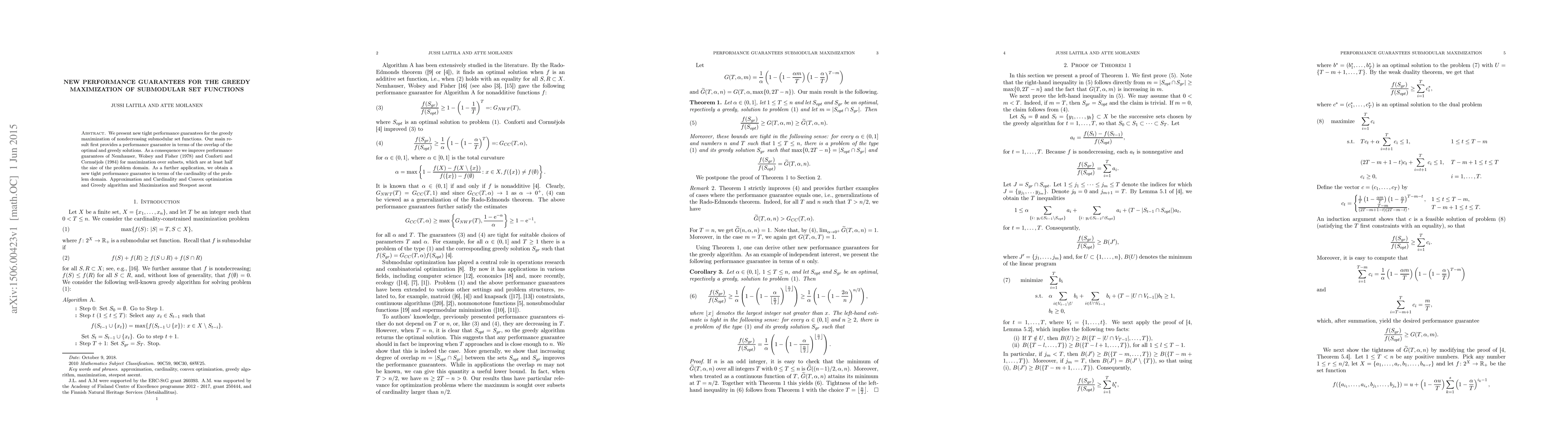 This paper presents new tight performance guarantees for the greedy algorithm for maximizing nondecreasing submodular functions, improving upon previous results by Nemhauser, Wolsey, and Fisher, and Conforti and Cornuéjols. The main result provides a performance guarantee based on the overlap between optimal and greedy solutions.