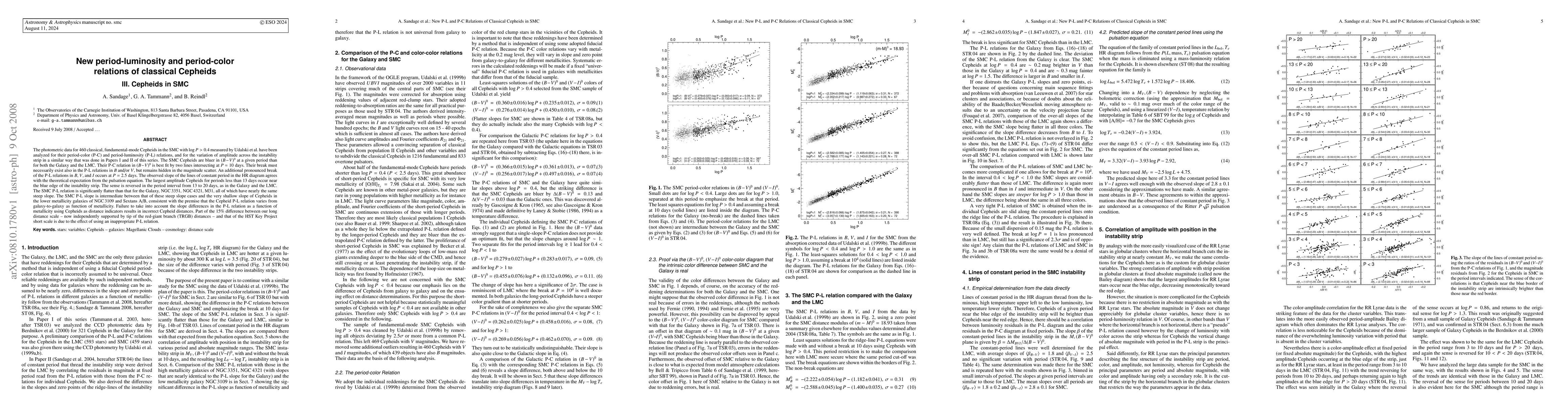 The photometric data for 460 classical, fundamental-mode Cepheids in the SMC with log P > 0.4 measured by Udalski et al. have been analyzed for their P-C and P-L relations, and for the variation of amplitude across the instability strip in a similar way that was done in Papers I and II of this series. The SMC Cepheids are bluer in (B-V) at a given period than for both the Galaxy and the LMC. Their P-C relation in (B-V) is best fit by two lines intersecting at P=10 d. Their break must necessarily exist also in the P-L relations in B and/or V, but remains hidden in the magnitude scatter. An additional pronounced break of the P-L relations in B, V, and I occurs at P=2.5 d. The observed slope of the lines of constant period in the HR diagram agrees with the theoretical expectation from the pulsation equation. The largest amplitude Cepheids for periods less than 13 days occur near the blue edge of the instability strip. The sense is reversed in the period interval from 13 to 20 days, as in the Galaxy and the LMC. The SMC P-L relation is significantly flatter than that for the Galaxy, NGC 3351, 4321, M31, all of which have nearly the same steep slope. The SMC P-L slope is intermediate between that of these steep slope cases and the very shallow slope of Cepheids in the lower metallicity galaxies of NGC 3109 and Sextans A/B, consistent with the premise that the Cepheid P-L relation varies from galaxy-to-galaxy as function of metallicity. Failure to take into account the slope differences in the P-L relation as a function of metallicity using Cepheids as distance indicators results in incorrect Cepheid distances. Part of the 15% difference between our long distance scale - now independently supported by TRGB distances - and that of the HST Key Project short scale is due to the effect of using an inappropriate P-L relation.