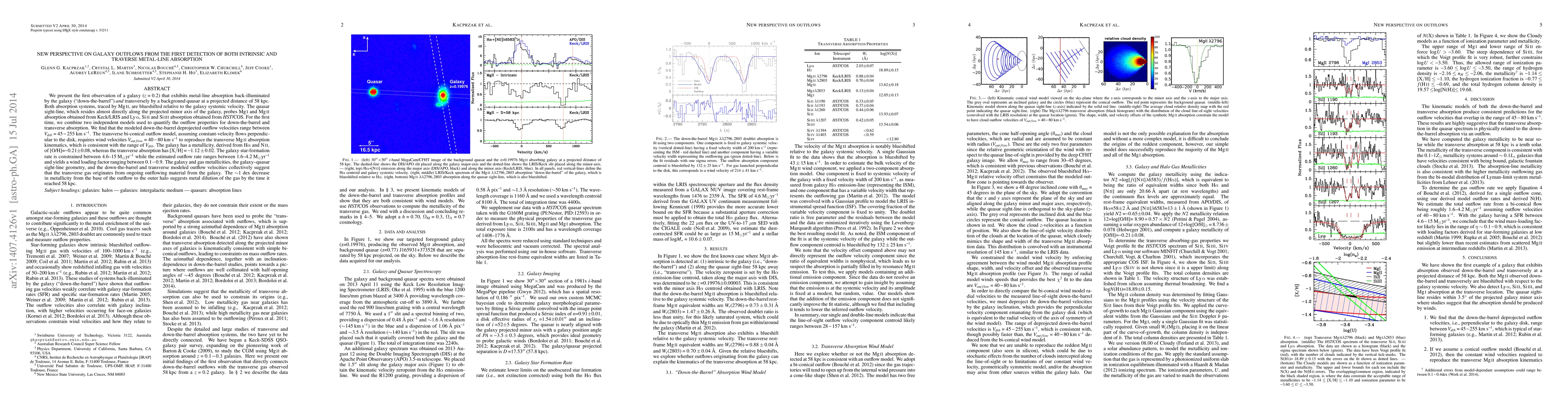 We present the first observation of a galaxy (z=0.2) that exhibits metal-line absorption back-illuminated by the galaxy ("down-the-barrel") and transversely by a background quasar at a projected distance of 58 kpc. Both absorption systems, traced by MgII, are blueshifted relative to the galaxy systemic velocity. The quasar sight-line, which resides almost directly along the projected minor axis of the galaxy, probes MgI and MgII absorption obtained from Keck/LRIS and Lya, SiII and SiIII absorption obtained from HST/COS. For the first time, we combine two independent models used to quantify the outflow properties for down-the-barrel and transverse absorption. We find that the modeled down-the-barrel deprojected outflow velocities range between $V_{dtb}=45-255$ km/s. The transverse bi-conical outflow model, assuming constant-velocity flows perpendicular to the disk, requires wind velocities $V_{outflow}=40-80$ km/s to reproduce the transverse MgII absorption kinematics, which is consistent with the range of $V_{dtb}$. The galaxy has a metallicity, derived from H$\alpha$ and NII, of $[{\rm O/H}]=-0.21\pm0.08$, whereas the transverse absorption has $[{\rm X/H}]=-1.12\pm0.02$. The galaxy star-formation rate is constrained between $4.6-15$ M$_{\odot}$/yr while the estimated outflow rate ranges between $1.6-4.2$ M$_{\odot}$/yr and yields a wind loading factor ranging between $0.1-0.9$. The galaxy and gas metallicities, the galaxy-quasar sight-line geometry, and the down-the-barrel and transverse modeled outflow velocities collectively suggest that the transverse gas originates from ongoing outflowing material from the galaxy. The $\sim$1 dex decrease in metallicity from the base of the outflow to the outer halo suggests metal dilution of the gas by the time it reached 58 kpc.