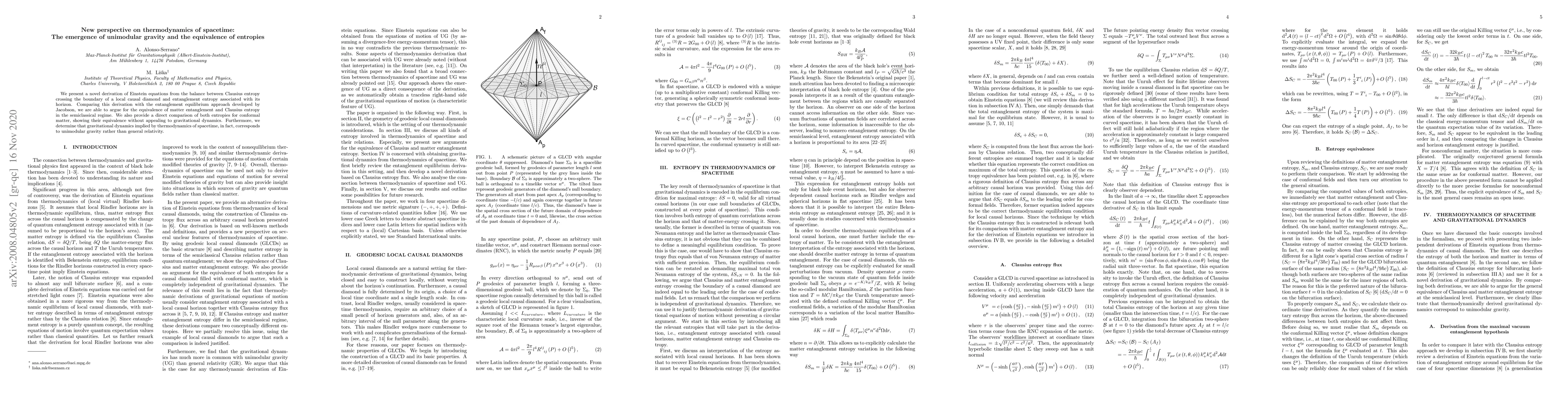 We present a novel derivation of Einstein equations from the balance between Clausius entropy crossing the boundary of a local causal diamond and entanglement entropy associated with its horizon. Comparing this derivation with the entanglement equilibrium approach developed by Jacobson, we are able to argue for the equivalence of matter entanglement and Clausius entropy in the semiclassical regime. We also provide a direct comparison of both entropies for conformal matter, showing their equivalence without appealing to gravitational dynamics. Furthermore, we determine that gravitational dynamics implied by thermodynamics of spacetime, in fact, corresponds to unimodular gravity rather than general relativity.