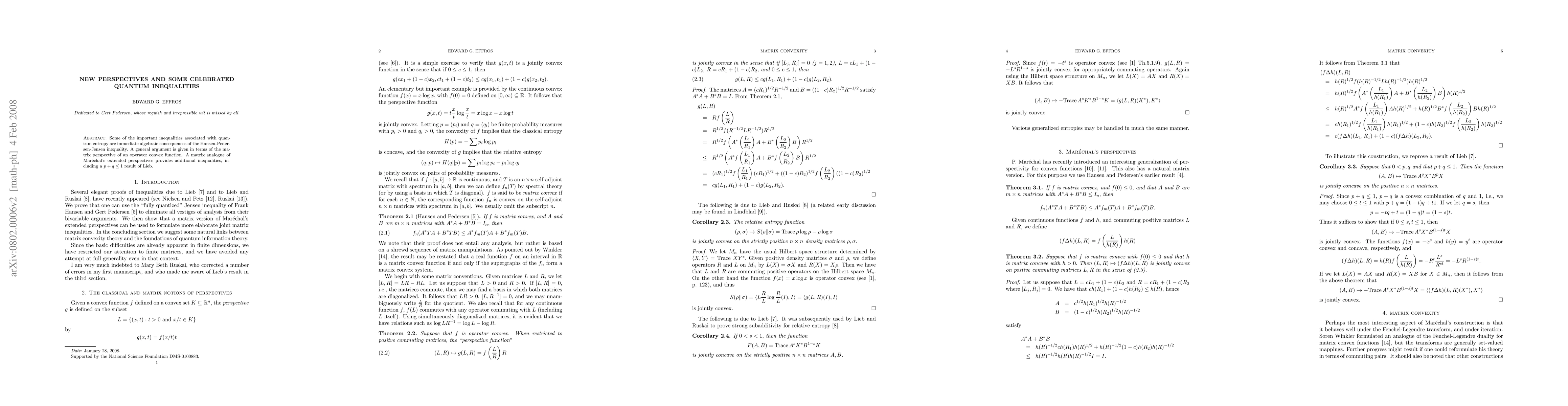Some of the important inequalities associated with quantum entropy are immediate algebraic consequences of the Hansen-Pedersen-Jensen inequality. A general argument is given in terms of the matrix perspective of an operator convex function. A matrix analogue of Mar\'{e}chal's extended perspectives provides additional inequalities, including a $p+q\leq 1$ result of Lieb.