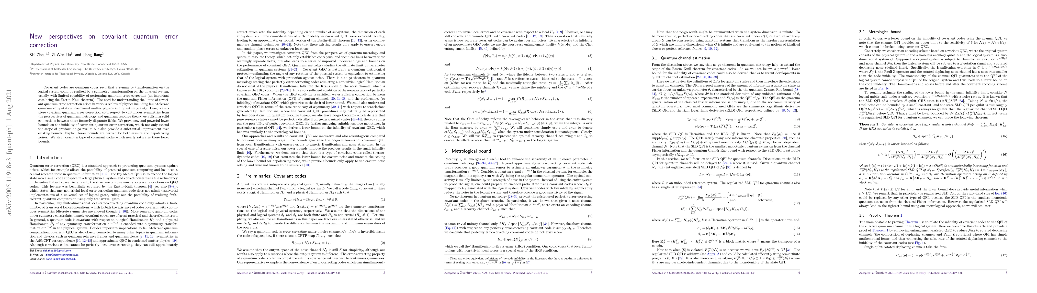 This paper explores covariant quantum error correction concerning continuous symmetries, establishing links between quantum metrology and quantum resource theory. It provides new lower bounds on error correction infidelity, improving previous results and nearly saturating them with specific covariant codes.