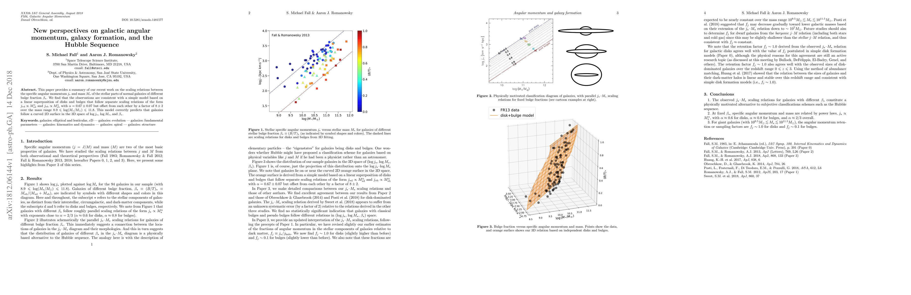 This paper provides a summary of our recent work on the scaling relations between the specific angular momentum j_* and mass M_* of the stellar parts of normal galaxies of different bulge fraction beta_*. We find that the observations are consistent with a simple model based on a linear superposition of disks and bulges that follow separate scaling relations of the form j_*d ~ M_*d^alpha and j_*b ~ M_*b^alpha with alpha = 0.67 +/- 0.07 but offset from each other by a factor of 8 +/- 2 over the mass range 8.9 <= log (M_*/M_Sun) <= 11.8. This model correctly predicts that galaxies follow a curved 2D surface in the 3D space of log j_*, log M_*, and beta_*.