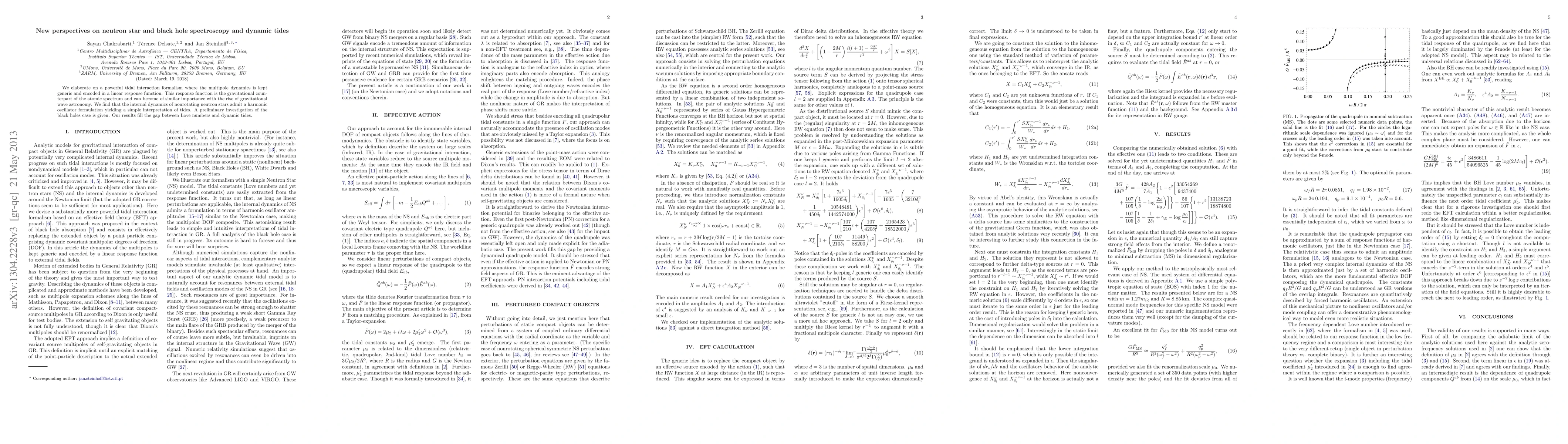 We elaborate on a powerful tidal interaction formalism where the multipole dynamics is kept generic and encoded in a linear response function. This response function is the gravitational counterpart of the atomic spectrum and can become of similar importance with the rise of gravitational wave astronomy. We find that the internal dynamics of nonrotating neutron stars admit a harmonic oscillator formulation yielding a simple interpretation of tides. A preliminary investigation of the black holes case is given. Our results fill the gap between Love numbers and dynamic tides.