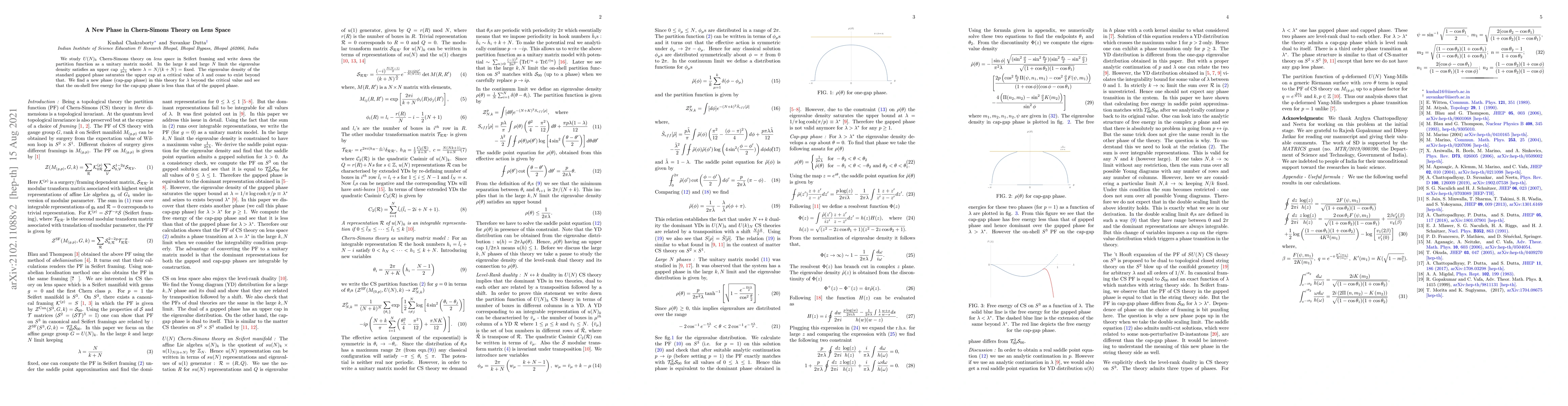 The paper presents a novel analysis of Chern-Simons theory on lens space, identifying a new phase (cap-gap phase) and demonstrating its distinct properties through saddle point approximation and level-rank duality checks.