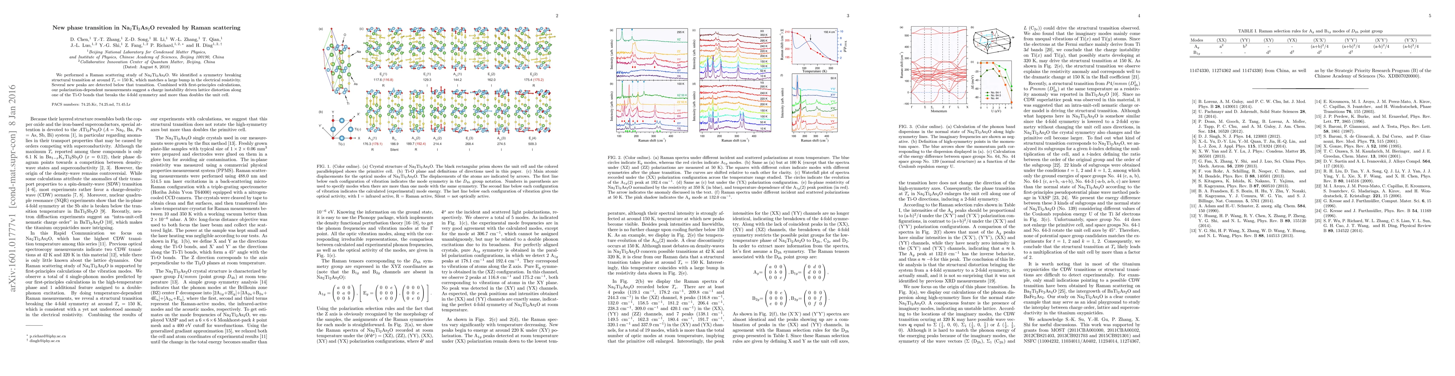 We performed a Raman scattering study of Na$_2$Ti$_2$As$_2$O. We identified a symmetry breaking structural transition at around $T_s = 150$ K, which matches a large bump in the electrical resistivity. Several new peaks are detected below that transition. Combined with first-principles calculations, our polarization-dependent measurements suggest a charge instability driven lattice distortion along one of the Ti-O bonds that breaks the 4-fold symmetry and more than doubles the unit cell.