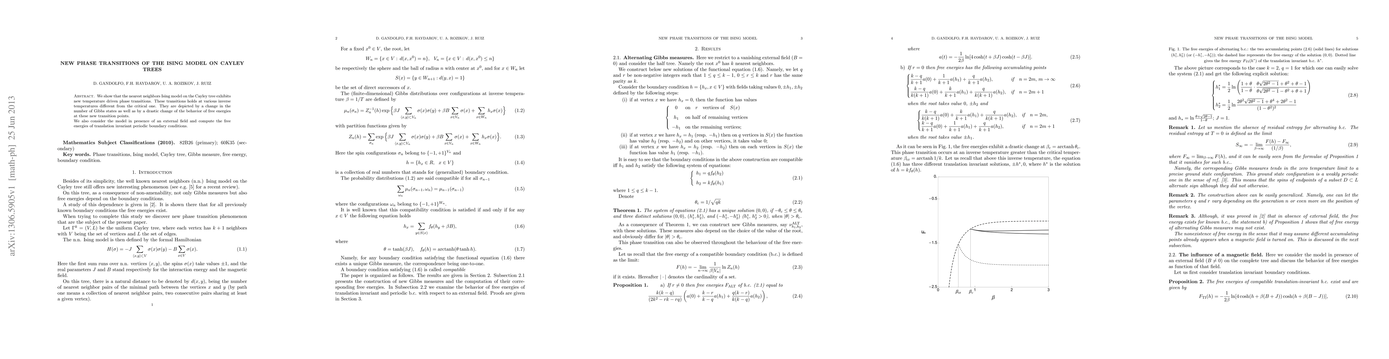 Summary: The Ising model on Cayley trees demonstrates novel temperature-driven phase transitions at inverse temperatures distinct from the critical point, characterized by changes in Gibbs states and significant shifts in free energy behavior.