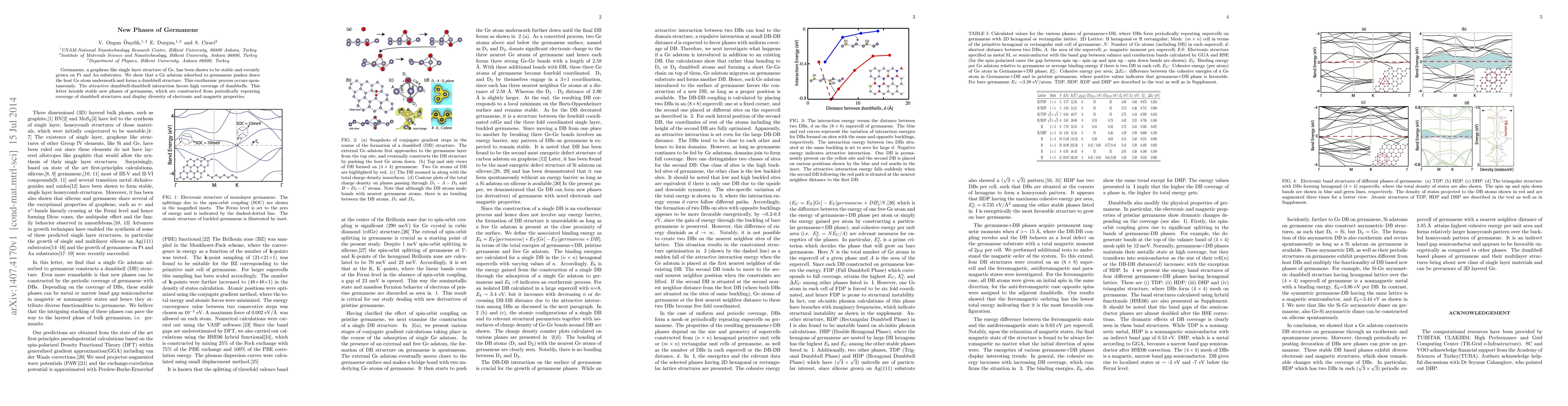 Germanene, a graphene like single layer structure of Ge, has been shown to be stable and recently grown on Pt and Au substrates. We show that a Ge adatom adsorbed to germanene pushes down the host Ge atom underneath and forms a dumbbell structure. This exothermic process occurs spontaneously. The attractive dumbbell-dumbbell interaction favors high coverage of dumbbells. This letter heralds stable new phases of germanene, which are constructed from periodically repeating coverage of dumbbell structures and display diversity of electronic and magnetic properties.