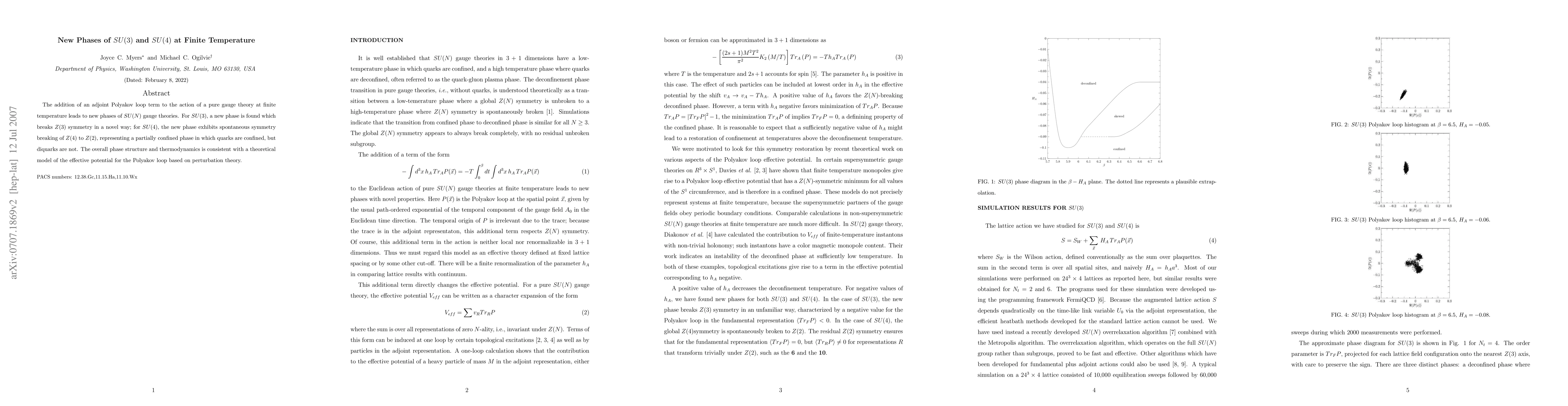 This paper explores new phases in SU(3) and SU(4) gauge theories at finite temperature, introducing an adjoint Polyakov loop term. For SU(3), a novel Z(3) symmetry-breaking phase is discovered, while for SU(4), a partially confined phase with Z(4) symmetry breaking to Z(2) is identified, where quarks are confined but diquarks are not.