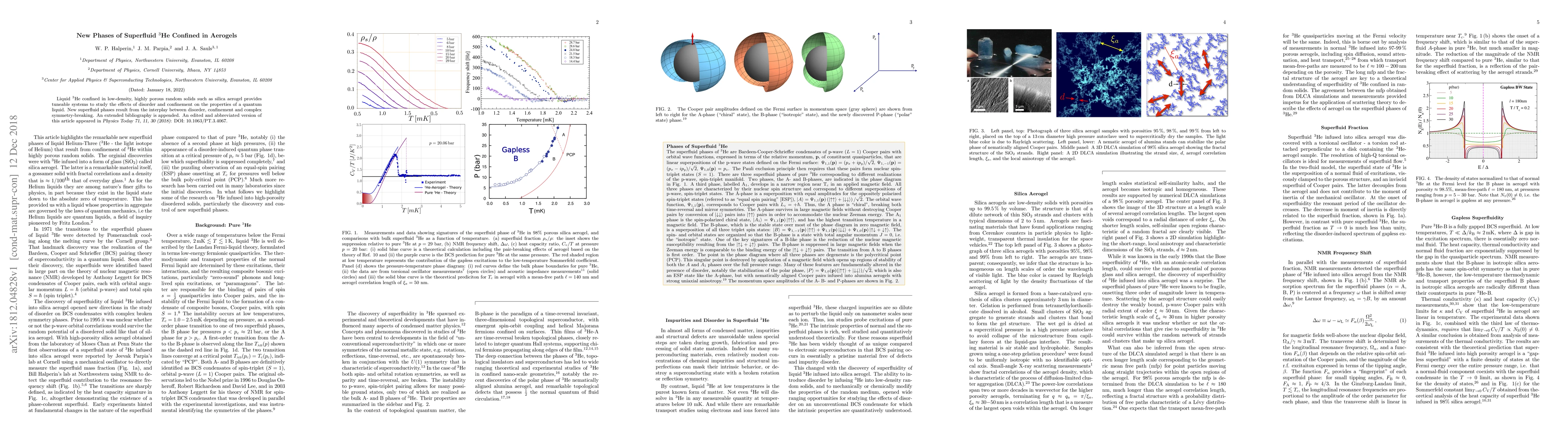 This research investigates novel superfluid phases in $^3$He confined within silica aerogels, revealing how disorder and confinement influence the quantum liquid's properties, leading to complex symmetry-breaking phenomena. The study provides a comprehensive bibliography and highlights the unique interplay between confinement, disorder, and superfluidity.