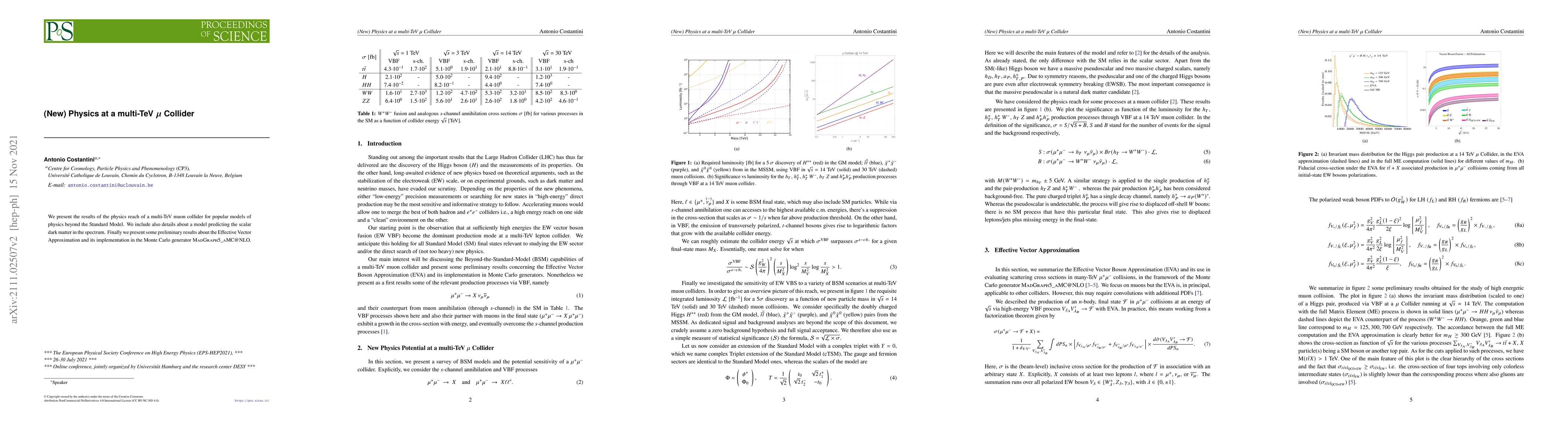 A multi-TeV muon collider is studied for its physics reach, including searches for scalar dark matter and tests of popular models beyond the Standard Model, with implications for future particle physics experiments.