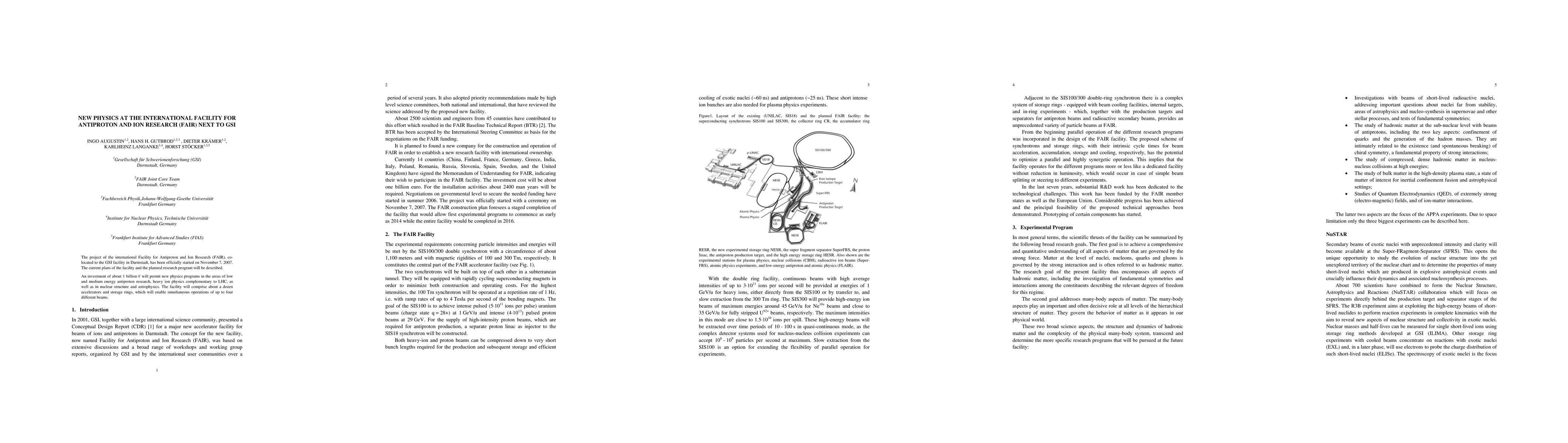 The FAIR project, initiated in 2007, aims to explore new physics through low and medium energy antiproton research, heavy ion physics, and nuclear structure and astrophysics, with a €1 billion investment. The facility will house multiple accelerators and storage rings, allowing for simultaneous operations of up to four different beams.