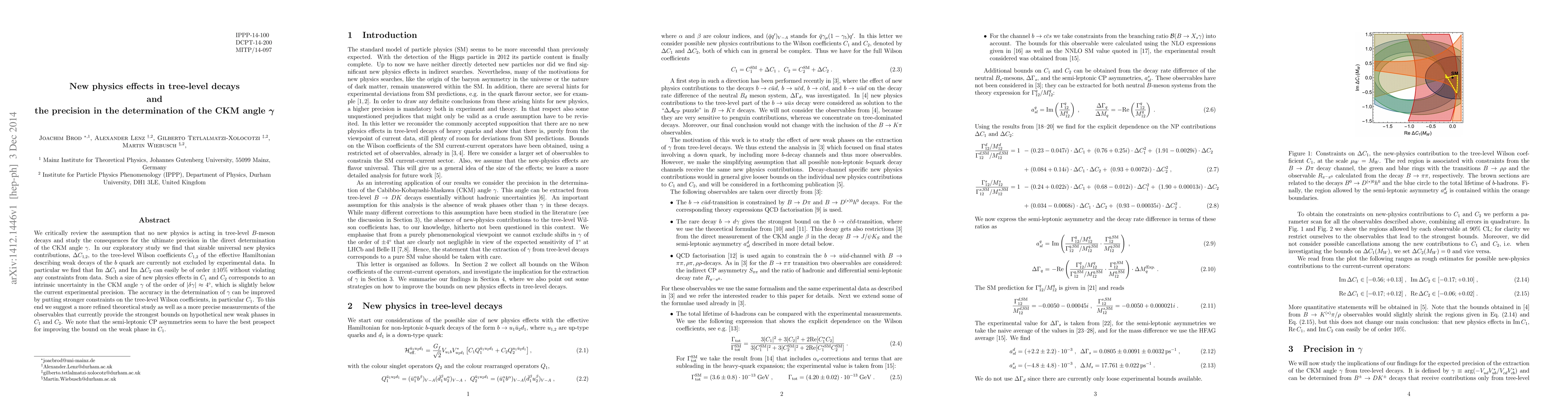 Research finds that new physics effects in tree-level B-meson decays could improve the precision of determining the CKM angle gamma, potentially leading to an uncertainty of 4 degrees, while stronger constraints on certain coefficients could enhance accuracy.