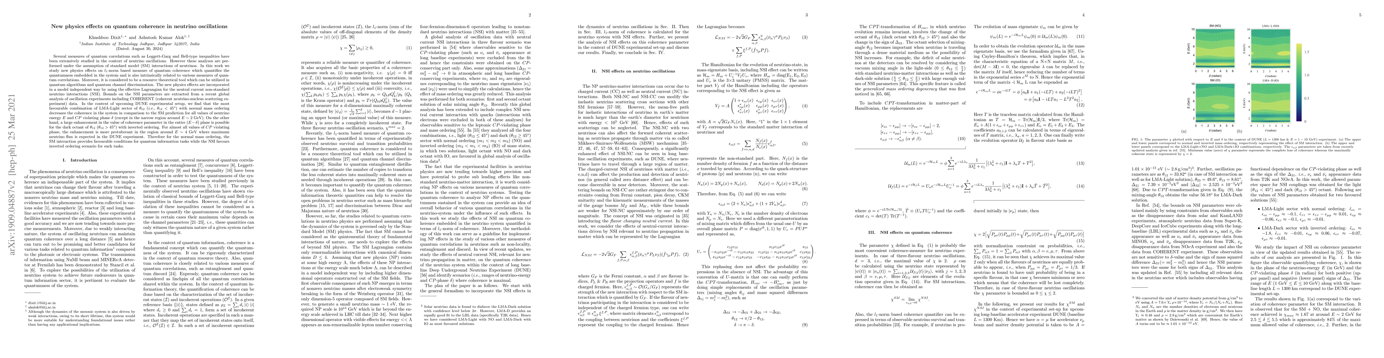 New physics effects on neutrino oscillations reduce quantum coherence for normal mass ordering but enhance it for inverted ordering scenarios, with implications for quantum algorithms and information tasks.