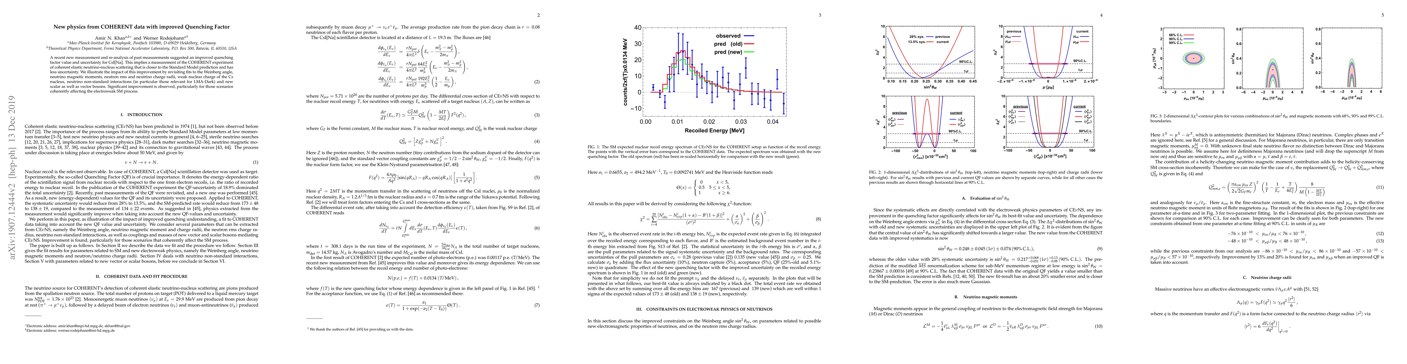 A recent new measurement and re-analysis of past measurements suggested an improved quenching factor value and uncertainty for CsI[Na]. This implies a measurement of the COHERENT experiment of coherent elastic neutrino-nucleus scattering that is closer to the Standard Model prediction and has less uncertainty. We illustrate the impact of this improvement by revisiting fits to the Weinberg angle, neutrino magnetic moments, neutron rms and neutrino charge radii, neutrino non-standard interactions (in particular those relevant for LMA-Dark) and new scalar as well as vector bosons. Significant improvement is observed, particularly for those scenarios coherently affecting the electroweak SM process.
