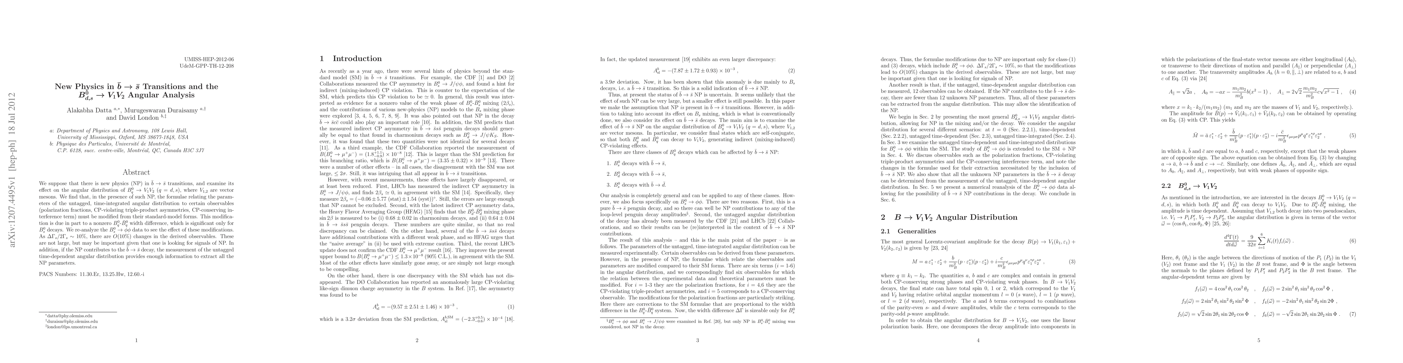 We suppose that there is new physics (NP) in b -> s transitions, and examine its effect on the angular distribution of B_q^0 -> V_1 V_2 (q=d,s), where V_{1,2} are vector mesons. We find that, in the presence of such NP, the formulae relating the parameters of the untagged, time-integrated angular distribution to certain observables (polarization fractions, CP-violating triple-product asymmetries, CP-conserving interference term) must be modified from their standard-model forms. This modification is due in part to a nonzero B^0_q-Bbar^0_q width difference, which is significant only for B^0_s decays. We re-analyze the B^0_s -> phi phi data to see the effect of these modifications. As (Delta Gamma_s/2)/Gamma_s ~ 10%, there are O(10%) changes in the derived observables. These are not large, but may be important given that one is looking for signals of NP. In addition, if the NP contributes to the b -> s decay, the measurement of the untagged time-dependent angular distribution provides enough information to extract all the NP parameters.