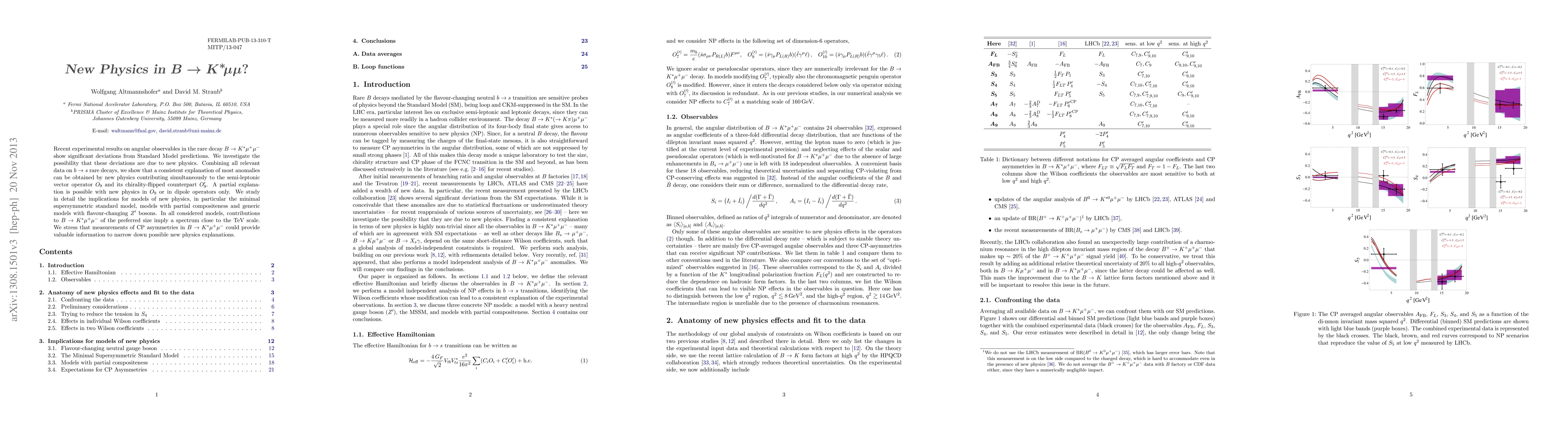 Recent experimental results on the rare decay $B\to K^*\mu^+\mu^-$ show significant deviations from Standard Model predictions, suggesting new physics contributions. A consistent explanation of these anomalies can be obtained by new physics affecting both $O_9$ and $O_9'$, with implications for models like the minimal supersymmetric standard model and $Z^\prime$ bosons.