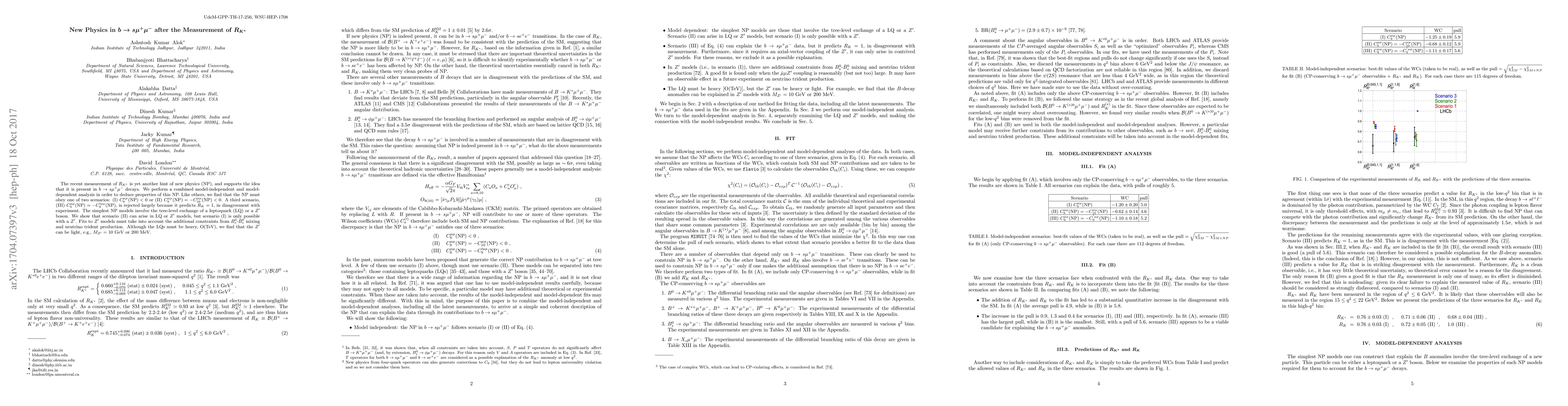 The recent measurement of $R_{K^*}$ is yet another hint of new physics (NP), and supports the idea that it is present in $b\to s\mu^+\mu^-$ decays. We perform a combined model-independent and model-dependent analysis in order to deduce properties of this NP. Like others, we find that the NP must obey one of two scenarios: (I) $C_9^{\mu\mu}({\rm NP}) < 0$ or (II) $C_9^{\mu\mu}({\rm NP}) = - C_{10}^{\mu\mu}({\rm NP}) < 0$. A third scenario, (III) $C_9^{\mu\mu}({\rm NP}) = - C_{9}^{\prime \mu\mu}({\rm NP})$, is rejected largely because it predicts $R_K = 1$, in disagreement with experiment. The simplest NP models involve the tree-level exchange of a leptoquark (LQ) or a $Z'$ boson. We show that scenario (II) can arise in LQ or $Z'$ models, but scenario (I) is only possible with a $Z'$. Fits to $Z'$ models must take into account the additional constraints from $B^0_s$-${\bar B}^0_s$ mixing and neutrino trident production. Although the LQs must be heavy, O(TeV), we find that the $Z'$ can be light, e.g., $M_{Z'} = 10$ GeV or 200 MeV.