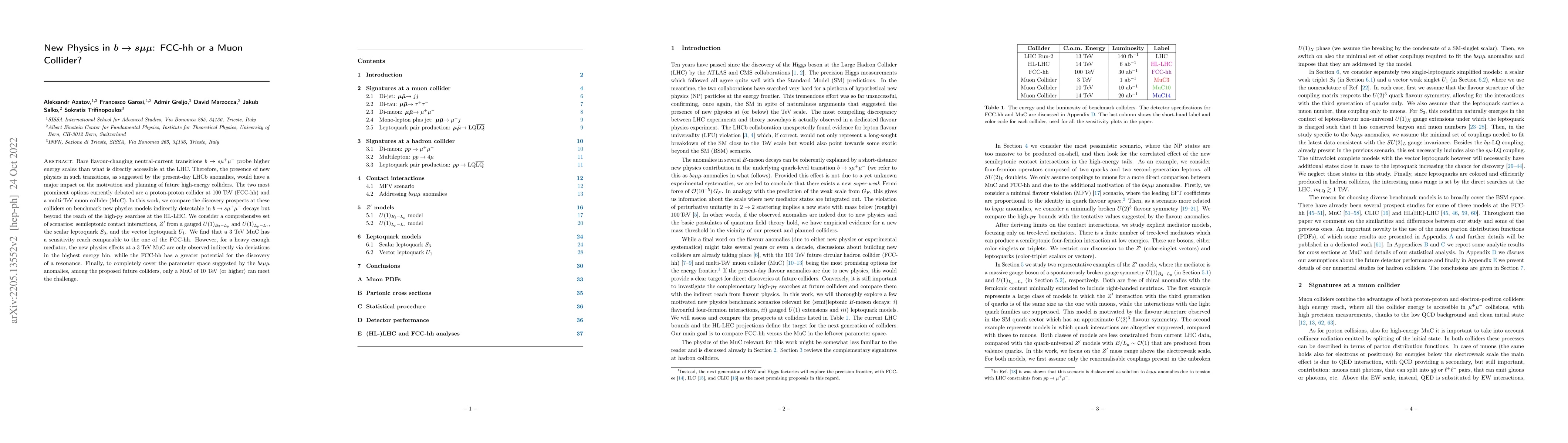 Rare flavour-changing neutral-current transitions $b \to s \mu^+ \mu^-$ probe higher energy scales than what is directly accessible at the LHC. Therefore, the presence of new physics in such transitions, as suggested by the present-day LHCb anomalies, would have a major impact on the motivation and planning of future high-energy colliders. The two most prominent options currently debated are a proton-proton collider at 100 TeV (FCC-hh) and a multi-TeV muon collider (MuC). In this work, we compare the discovery prospects at these colliders on benchmark new physics models indirectly detectable in $b \to s \mu^+ \mu^-$ decays but beyond the reach of the high-$p_T$ searches at the HL-LHC. We consider a comprehensive set of scenarios: semileptonic contact interactions, $Z^\prime$ from a gauged $U(1)_{B_3 - L_\mu}$ and $U(1)_{L_\mu - L_\tau}$, the scalar leptoquark $S_3$, and the vector leptoquark $U_1$. We find that a 3 TeV MuC has a sensitivity reach comparable to the one of the FCC-hh. However, for a heavy enough mediator, the new physics effects at a 3 TeV MuC are only observed indirectly via deviations in the highest energy bin, while the FCC-hh has a greater potential for the discovery of a resonance. Finally, to completely cover the parameter space suggested by the $bs\mu\mu$ anomalies, among the proposed future colliders, only a MuC of 10 TeV (or higher) can meet the challenge.