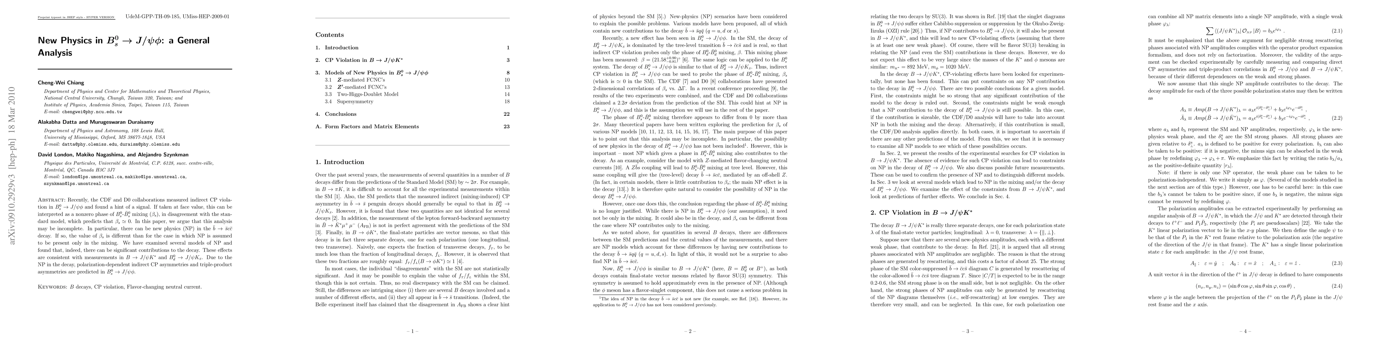 This paper investigates potential new physics in the Bs -> J/psi phi decay that could explain indirect CP violation measurements, suggesting that the observed phase may differ from the standard model prediction if new physics influences the bbar -> sbar c cbar decay, leading to new polarization-dependent CP asymmetries.