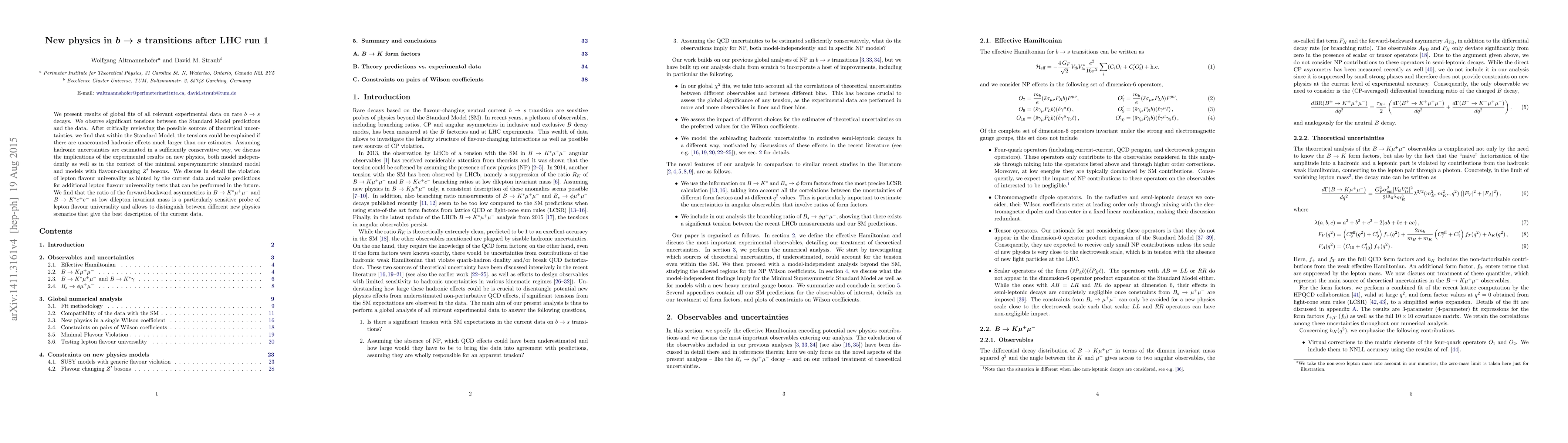 We present results of global fits of all relevant experimental data on rare $b \to s$ decays. We observe significant tensions between the Standard Model predictions and the data. After critically reviewing the possible sources of theoretical uncertainties, we find that within the Standard Model, the tensions could be explained if there are unaccounted hadronic effects much larger than our estimates. Assuming hadronic uncertainties are estimated in a sufficiently conservative way, we discuss the implications of the experimental results on new physics, both model independently as well as in the context of the minimal supersymmetric standard model and models with flavour-changing $Z'$ bosons. We discuss in detail the violation of lepton flavour universality as hinted by the current data and make predictions for additional lepton flavour universality tests that can be performed in the future. We find that the ratio of the forward-backward asymmetries in $B \to K^* \mu^+\mu^-$ and $B \to K^* e^+e^-$ at low dilepton invariant mass is a particularly sensitive probe of lepton flavour universality and allows to distinguish between different new physics scenarios that give the best description of the current data.