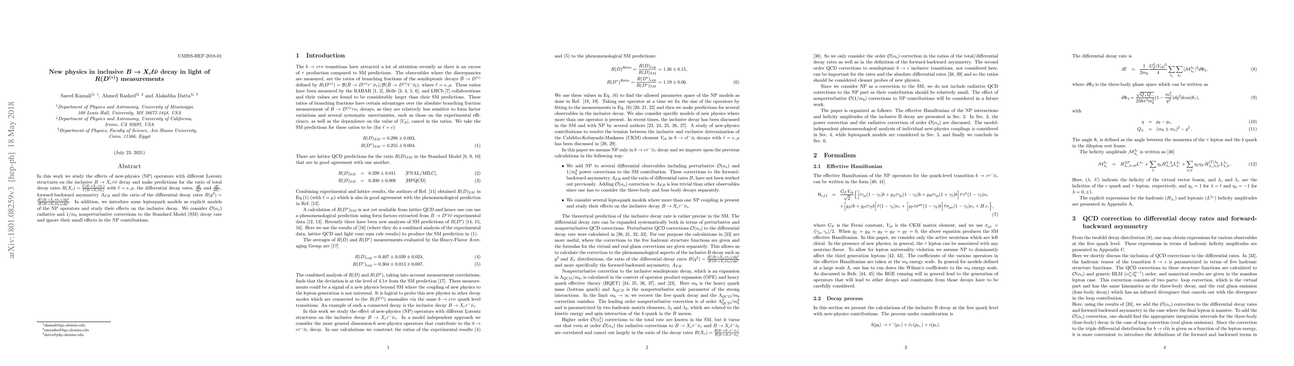 This paper investigates the impact of new-physics operators on the inclusive $B \to X_c\tau \bar{\nu}$ decay, predicting various decay rates and asymmetries. It also explores leptoquark models as potential sources of new physics, considering radiative and nonperturbative corrections to the Standard Model.