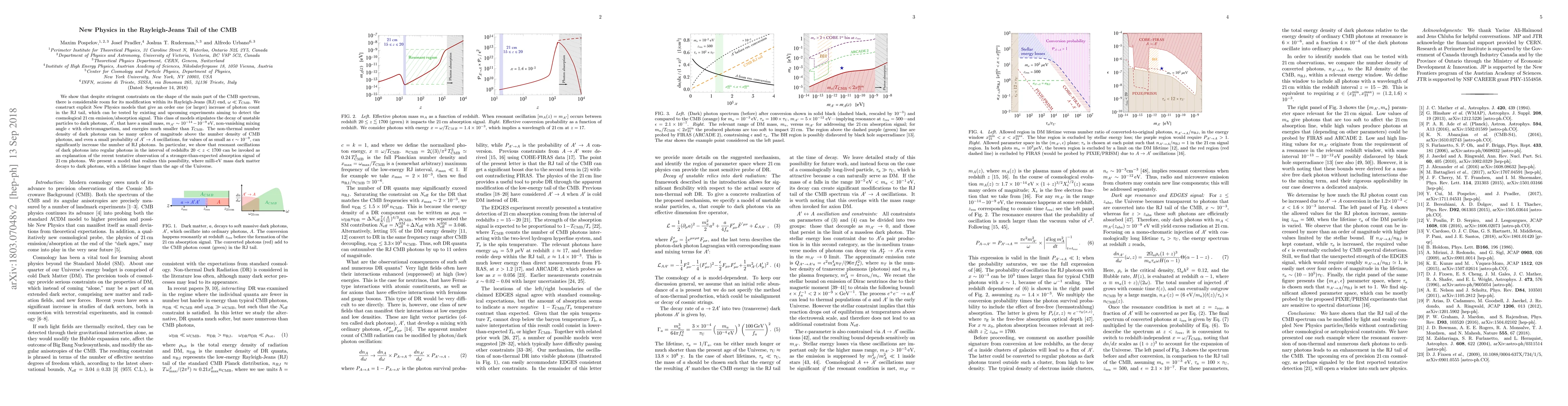 New physics models predict a significant increase in photon count at the Rayleigh-Jeans tail of the CMB spectrum due to dark photon decay, which could explain recent observations of 21 cm absorption signals.
