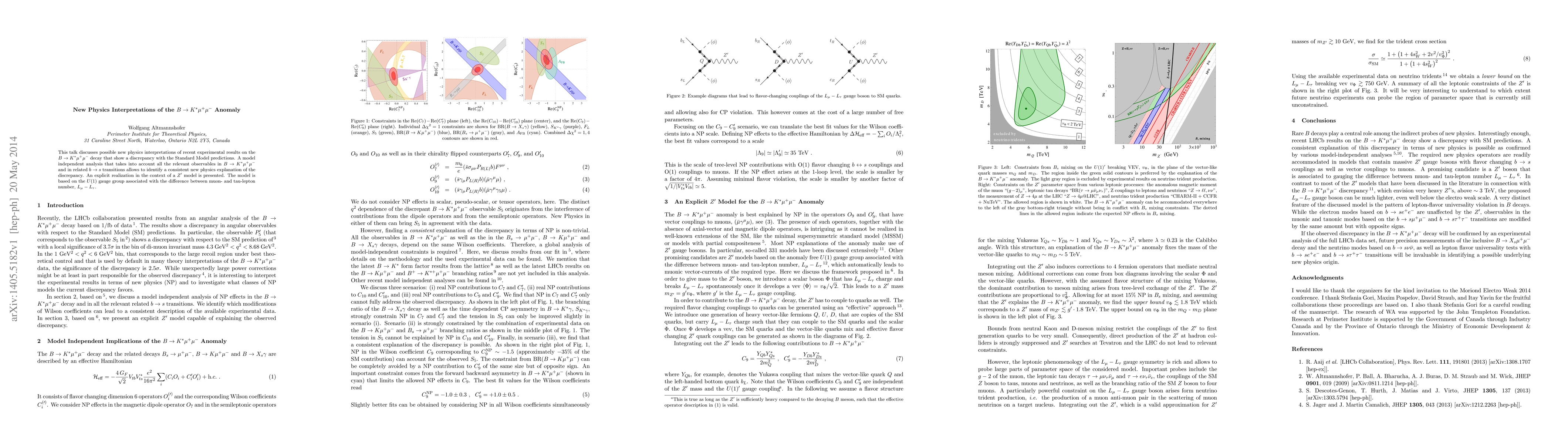 This paper explores new physics explanations for the B-->K*mu+mu- decay anomaly, identifying a consistent model-independent solution and presenting a Z' model based on the U(1) gauge group for the difference between muon and tau-lepton numbers.