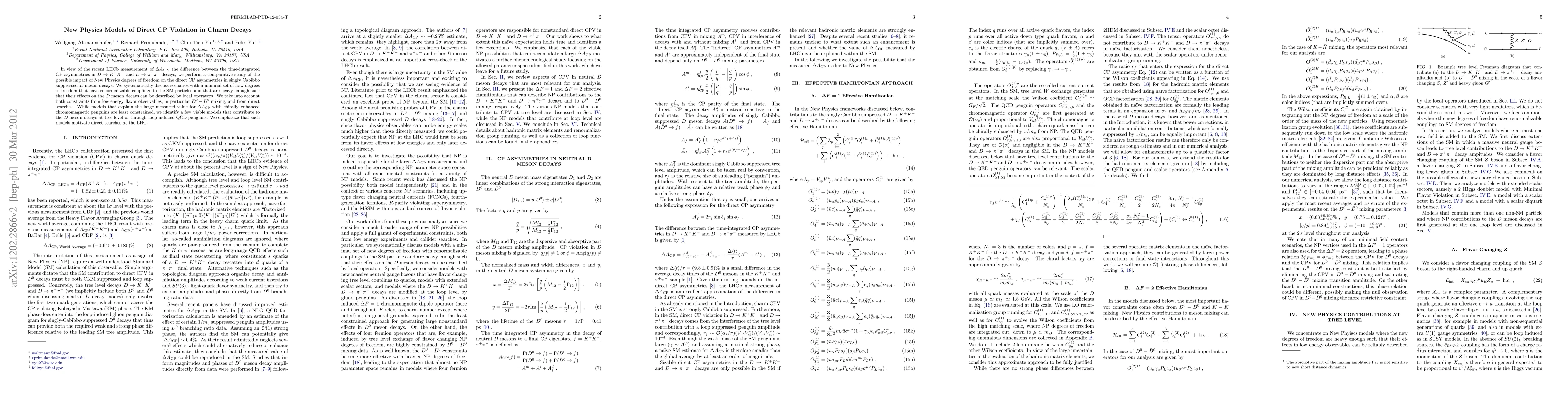 In view of the recent LHCb measurement of Delta A_CP, the difference between the time-integrated CP asymmetries in D --> K+K- and D --> pi+pi- decays, we perform a comparative study of the possible impact of New Physics degrees of freedom on the direct CP asymmetries in singly Cabibbo suppressed D meson decays. We systematically discuss scenarios with a minimal set of new degrees of freedom that have renormalizable couplings to the SM particles and that are heavy enough such that their effects on the D meson decays can be described by local operators. We take into account both constraints from low energy flavor observables, in particular D0-D0bar mixing, and from direct searches. While models that explain the large measured value for Delta A_CP with chirally enhanced chromomagnetic penguins are least constrained, we identify a few viable models that contribute to the D meson decays at tree level or through loop induced QCD penguins. We emphasize that such models motivate direct searches at the LHC.