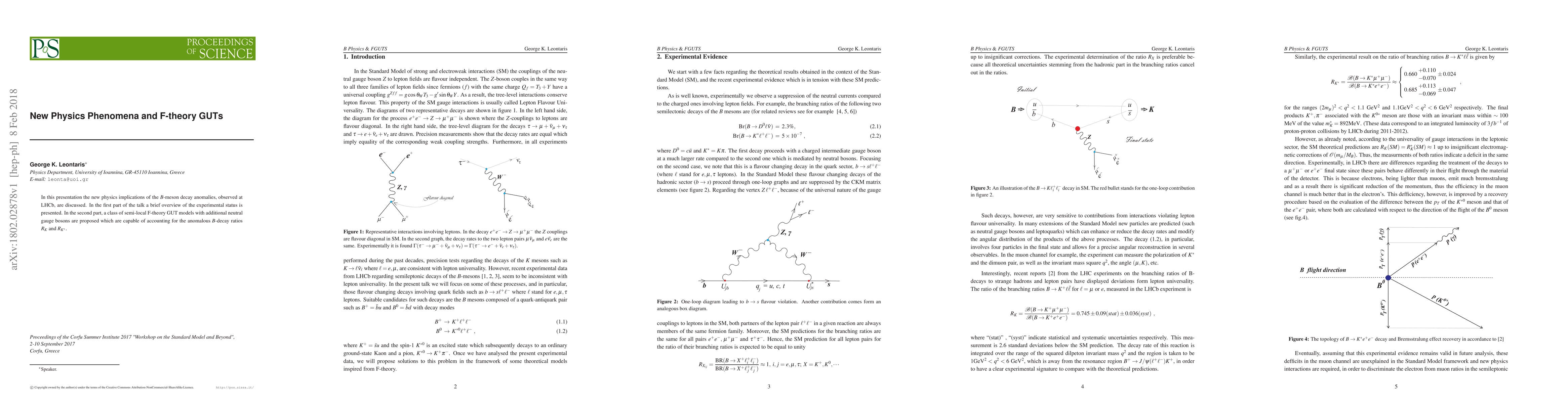 New physics phenomena are proposed to explain B-meson decay anomalies, suggesting a class of semi-local F-theory GUT models with additional neutral gauge bosons can account for the observed ratios R_K and R_K*.