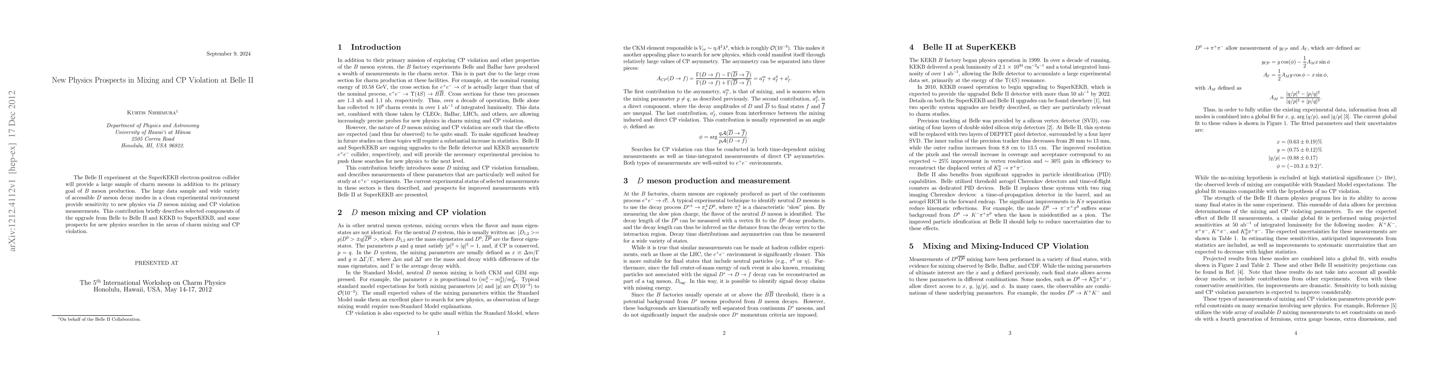 Summary: The Belle II experiment aims to explore new physics through enhanced measurements of charm meson mixing and CP violation, leveraging its large data sample and clean experimental environment derived from upgrades to the SuperKEKB collider and the Belle II detector.