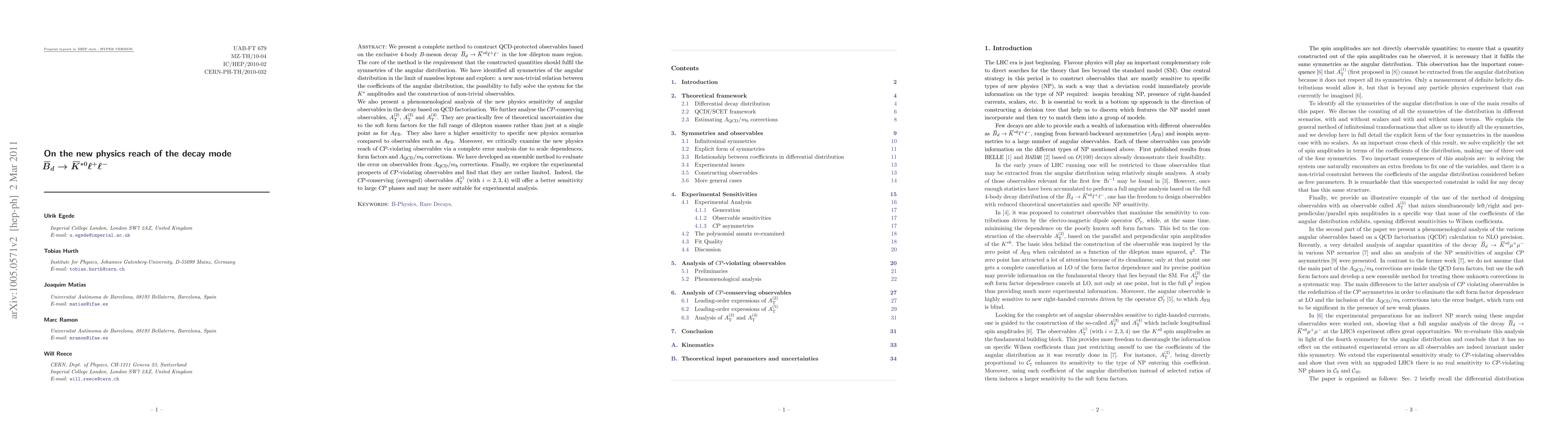 We present a complete method to construct QCD-protected observables based on the exclusive 4-body $B$-meson decay $\bar{B} \to \bar{K}^{*0}\ell^+\ell^-$ in the low dilepton mass region. The core of the method is the requirement that the constructed quantities should fulfil the symmetries of the angular distribution. We have identified all symmetries of the angular distribution in the limit of massless leptons and explore: a new non-trivial relation between the coefficients of the angular distribution, the possibility to fully solve the system for the $K^{*}$ amplitudes, and the construction of non-trivial observables. We also present a phenomenological analysis of the new physics sensitivity of angular observables in the decay based on QCD factorisation. We further analyse the CP-conserving observables, $A_{T}^{(2)}$, $A_{T}^{(3)}$ and $A_{T}^{(4)}$. They are practically free of theoretical uncertainties due to the soft form factors for the full range of dilepton masses rather than just at a single point as for $A_{FB}$. They also have a higher sensitivity to specific new physics scenarios compared to observables such as $A_{FB}$. Moreover, we critically examine the new physics reach of CP-violating observables via a complete error analysis due to scale dependences, form factors and $\Lambda/m_b$ corrections. We have developed an ensemble method to evaluate the error on observables from $\Lambda/m_b$ corrections. Finally, we explore the experimental prospects of CP-violating observables and find that they are rather limited. Indeed, the CP-conserving (averaged) observables $A_{T}^{(i)}$ (with $i=2,3,4$) will offer a better sensitivity to large CP phases and may be more suitable for experimental analysis.