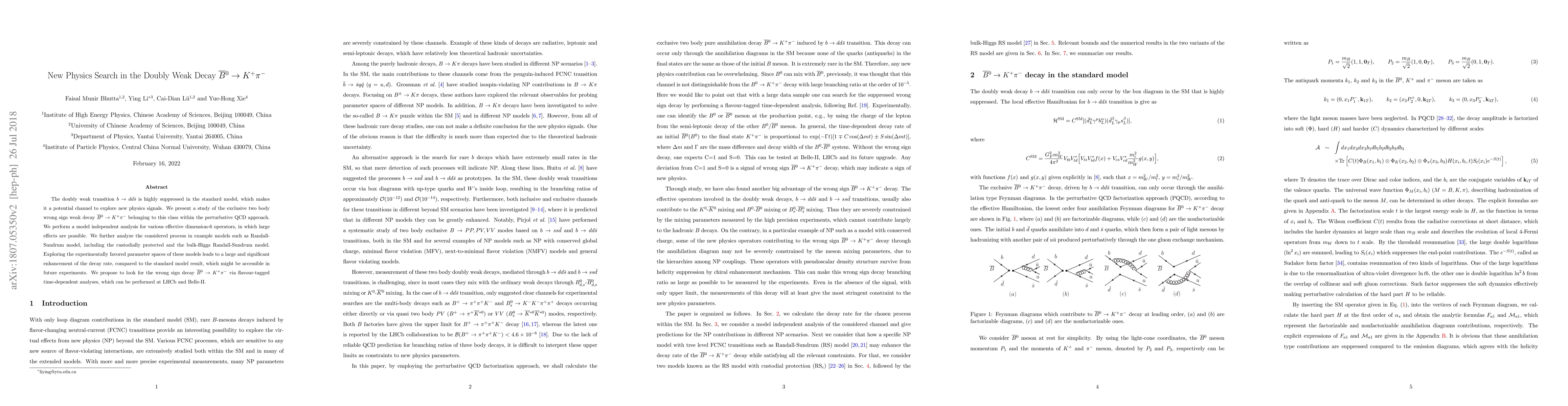 The doubly weak transition $b\to dd{\bar s}$ is highly suppressed in the standard model, which makes it a potential channel to explore new physics signals. We present a study of the exclusive two body wrong sign weak decay $\smash{\overline B}^0\to K^+\pi^-$ belonging to this class within the perturbative QCD approach. We perform a model independent analysis for various effective dimension-6 operators, in which large effects are possible. We further analyze the considered process in example models such as Randall-Sundrum model, including the custodially protected and the bulk-Higgs Randall-Sundrum model. Exploring the experimentally favored parameter spaces of these models leads to a large and significant enhancement of the decay rate, compared to the standard model result, which might be accessible in future experiments. We propose to look for the wrong sign decay $\smash{\overline B}^0\to K^+\pi^-$ via flavour-tagged time-dependent analyses, which can be performed at LHCb and Belle-II.
